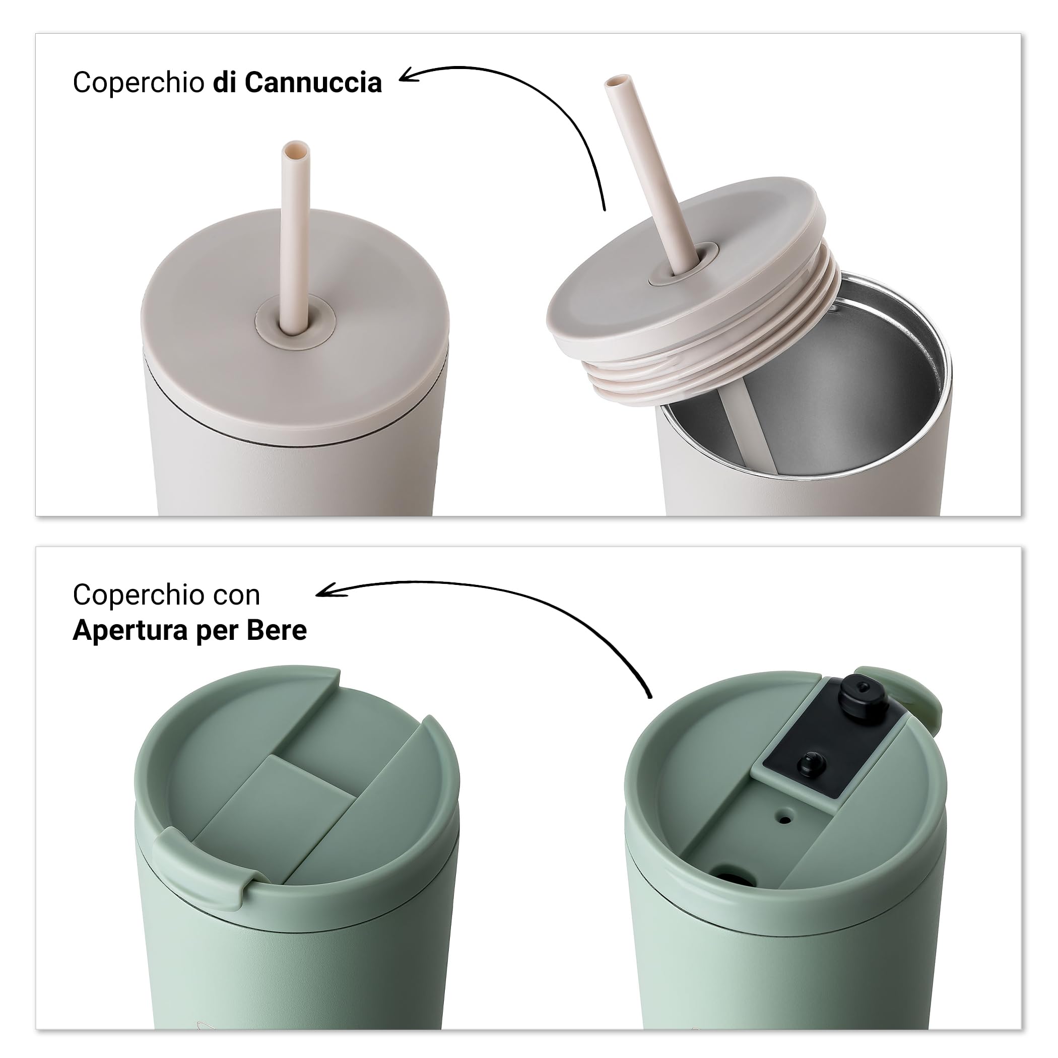 Adatto anche per Bevande gassate Trasporto sicuro Il coperchio senza BPA con anello di tenuta mantiene la tenuta e lo zaino rimane asciutto. Tazze Termiche Con Cannuccia VINSUN Tazza Termica Con Cannuccia E Manico 1200ml - Acciaio Inossidabile, Doppia Parete, Bevande Calde E Fredde, Senza BPA - Tazza Da Viaggio Per Tè, Auto, Università : Amazon.it: Casa E Cucina Thermos Caffe Il popolare coperchio a cannuccia e il pratico coperchio con apertura per bere sono entrambi inclusi. Con una capacità di 720ml e due diversi coperchi, entrambi adatti alle bevande gassate, questo tumbler in acciaio inossidabile offre la massima flessibilità e convenienza. Design moderno - Di buon gusto e senza tempo in viaggio, in auto, a scuola, all'università o in ufficio. Cannuccia o Apertura per Bere? Due Coperchi inclusi: Coperchio a Cannuccia e Apertura per Bere Questa tazza termica isolata in acciaio inossidabile è dotata di due coperchi in plastica. Tazza termica riutilizzabile e sostenibile in acciaio inossidabile, ideale per tè o caffè da portare con sé, con una capacità di 720ml e un diametro di 70mm, perfetta per il supporto dell'auto. Riutilizzabile Utilizzate la vostra tazza in acciaio inox come volete: l'alternativa alle bottiglie usa e getta. Godi una riduzione su Tazza termica con cannuccia , strato interno in acciaio inox 316, doppia parete , adatta per uomini e donne, per caffe/tè, con cinturino da polso. Acquista i tuoi stili preferi Perfetto per un grande sorso durante l'allenamento o per versarlo in una tazza di caffè. Questa tazza da caffè in acciaio inossidabile è lavabile in lavastoviglie? Per prolungare la durata della tazza in acciaio inossidabile, si consiglia di pulire a mano sia il coperchio che la tazza. Con il nostro tumbler, potrete dissetarvi a piacimento! Questa tazza è davvero a prova di perdite? Il coperchio con cannuccia è a prova di perdite sui lati e sul tappo a vite, ma non l'apertura per la cannuccia. Inoltre, entrambi i coperchi sono privi di BPA. La durata può essere prolungata sciacquando a mano la mug in acciaio inox. Il primo coperchio è dotato di una cannuccia, particolarmente apprezzata in caso di attività accidentate e viaggi in auto. Naturalmente, è possibile influenzarne la durata grazie alla chiusura ermetica. Il coperchio con apertura per bere, invece, è completamente a prova di perdite. hero-video Video del venditore L'acciaio inossidabile, robusto e infrangibile, garantisce una lunga durata, mentre il design senza tempo lo rende un compagno moderno in tutte le situazioni: sport, scuola, viaggi. Lungo caldo Grazie all'isolamento a doppia parete, il caffè rimane caldo per ore o il tè fresco più a lungo. Un altro vantaggio è rappresentato dalle proprietà insapori e inodori del materiale, che è anche privo di BPA. Il secondo coperchio è a prova di perdite e ha un'apertura per bere. Le bevande rimangono calde a lungo? Grazie all'isolamento a doppia parete, il nostro tumbler mantiene le bevande calde o fredde per ore.
