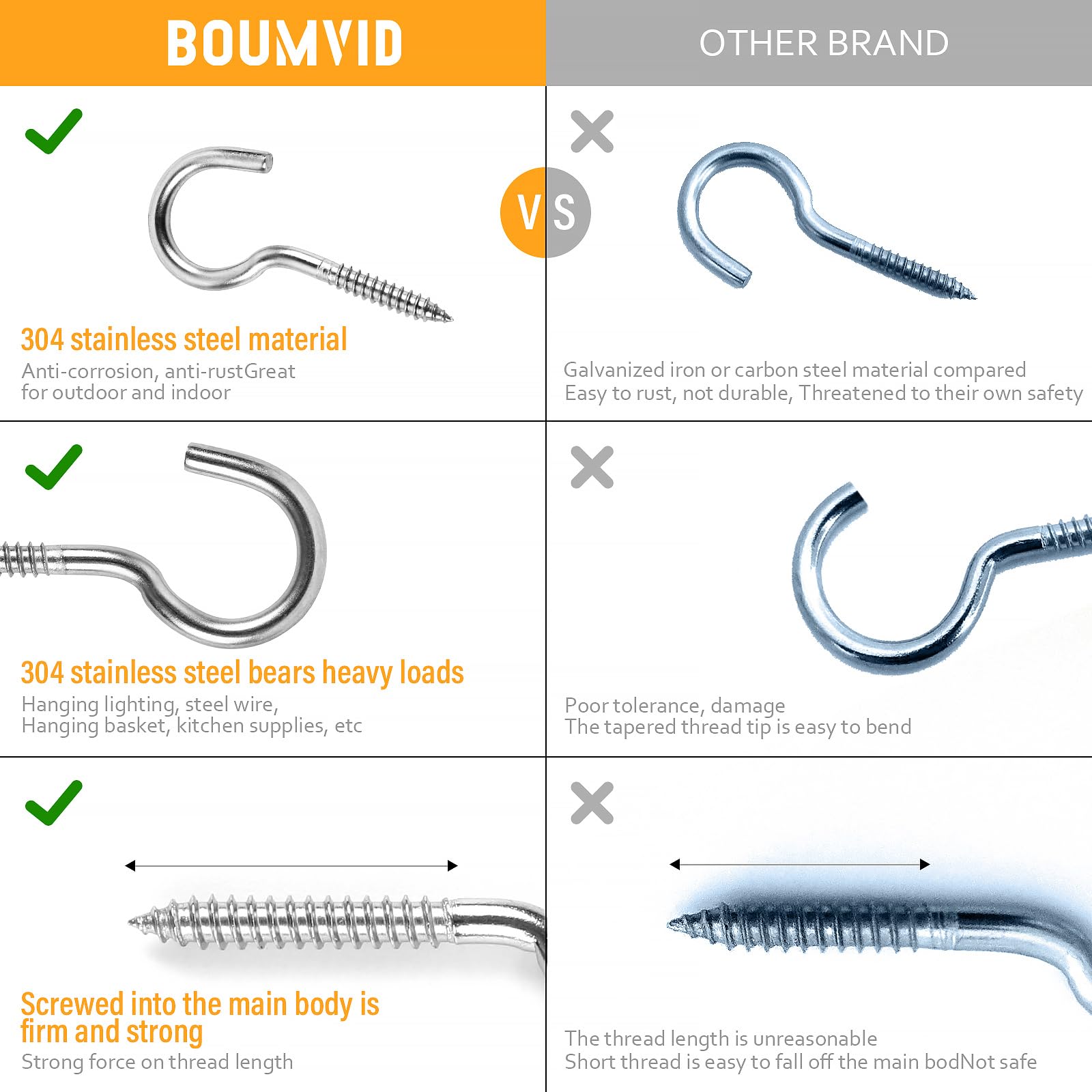 Uso interno ed esterno: i ganci a vite neri vengono solitamente utilizzati per appendere tazze da caffè, utensili da cucina, pareti fotografiche e ciondoli in legno. nonché per appendere ghirlande luminose all'aperto La superficie del gancio a vite è ricoperta da un rivestimento antiruggine nero che resiste efficacemente all'umidità e ad altri ambienti e ne prolunga la durata La lunghezza del gancio a vite è ragionevole, la filettatura è fine e uniforme, la vite è liscia, l'installazione è fissa e non è facile da allentare Elevata capacità di carico: il gancio per avvitare è appositamente progettato per applicazioni pesanti e può sopportare carichi elevati. Sono anche molto adatti per il collegamento di funi metalliche, cavi, amache, cestini, gabbie per uccelli, ecc. Facile da installare: il gancio nero per avvitare può essere facilmente avvitato nel legno, e il tubo di espansione può essere incorporato in modo più stabile su pareti, soffitti e altre superfici. Questi ganci sono molto adatti per la decorazione della casa e i progetti di bricolage e garantiscono una connessione sicura e stabile La lunghezza totale dei ganci a vite è di 39,8 mm, adatti per diverse applicazioni domestiche e aiutano a organizzare gli oggetti in modo semplice e ordinato Ganci A Vite Piccoli Ruayia Ganci A Vite In Acciaio Inox, 10 Pezzi, M3 X 40 Mm, 304, Autofilettanti, Viti A Occhielli, Ganci Da Soffitto, Viti A Gancio, Ganci Per Viti Gancio A Vite Misure Acciaio di alta qualità: il set di ganci a vite è realizzato in acciaio inossidabile di alta qualità, che ha eccellenti proprietà di ruggine, acqua e corrosione. Il set include: riceverete 50 ganci a vite neri piccoli e 50 tubi di espansione bianchi, nonché una scatola trasparente.