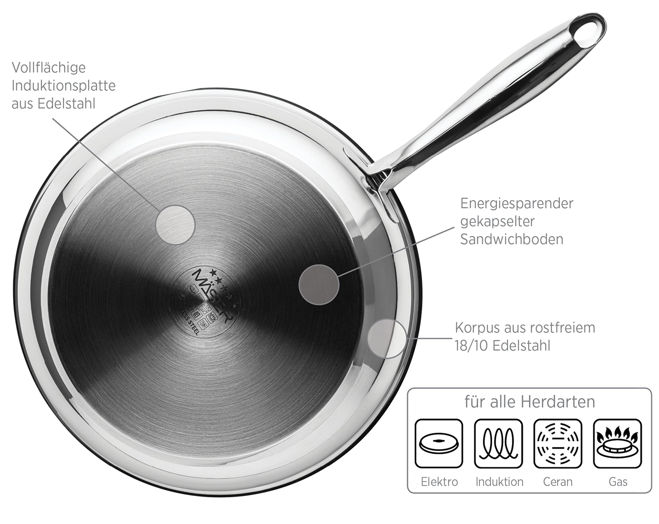 Professional Padella Profonda, Acciaio Inox, 28 Cm, Altezza: 6.6 Cm, Senza Fondo