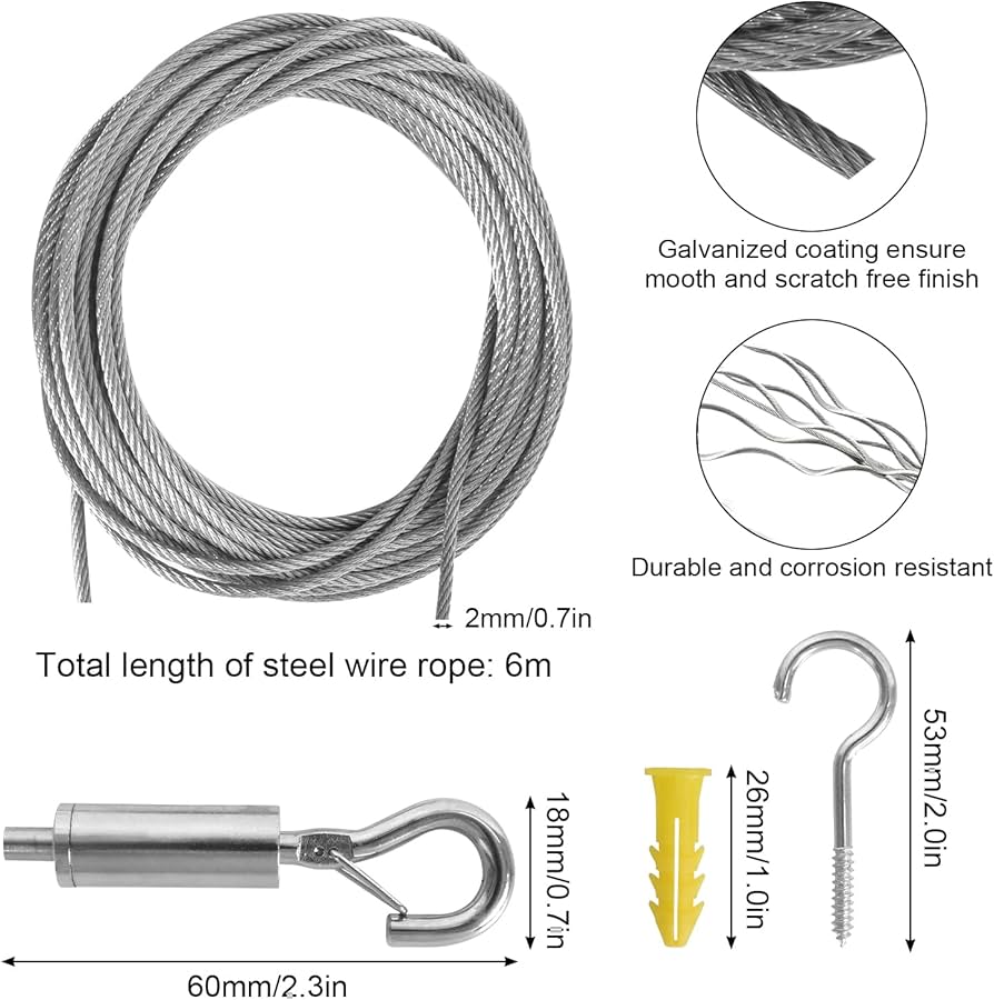 Fune Acciaio Inox Kit 6M, 2mm Filo Per Tenda, Corda Per Tende, Cavo Per