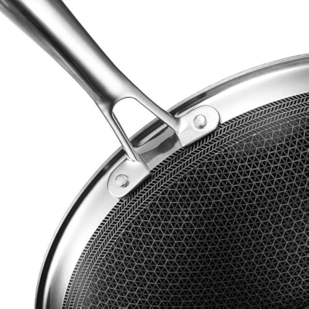 Inqibee Padella Da 20,3 Cm In Acciaio Inox A Tre Strati Con Coperchio, Padella Per Friggere, Padella, Padella A Induzione, Resistente E Sicura In Forno (manico Rivettato Da 21,5 Cm