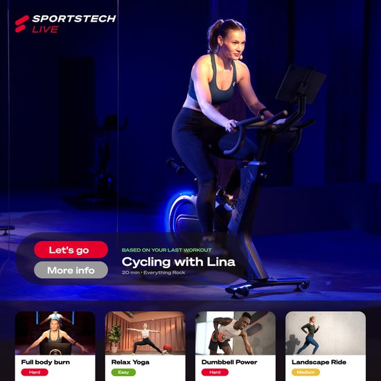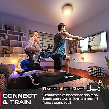 Numerosi corsi di fitness individuali. Collega il tuo tablet o il tuo smartphone e accedi all'app Sportstech live per monitorare i tuoi progressi e farti guidare da istruttori professionisti. Su e accanto al sBike Lite Monitora la tua forma fisica e le tue prestazioni. 1 Metti alla prova te stess 2 Rimani sempre in moviment 3 Semplicemente spegni 4 Spingilo al limite 5 Fitness in Varie Forme Sportstech sBike Lite - Bicicletta Indoor intelligente con LED + App con lezioni in diretta e on-demand e supporto tablet a 360° per un allenamento completo del corpo. ... Il nostro obiettivo è di renderti la scelta del prodotto e prezzo migliore più faci Allenamenti con istruttori professionali. In questo modo puoi concentrarti completamente sul tuo allenamento e raggiungere i tuoi obiettivi. Questa funzione non offre solo un'ottima esperienza visiva, ma ti aiuta anche a raggiungere i tuoi obiettivi di fitness tenendo sempre sotto controllo Il colore si adatta alla tua intensità. Ciao Energia 2 Manopola del Display 3 Manubrio multifunzione 4 Tecnologia LED 5 Sella & Supporto per Metriche di Fitness Intelligente Non solo ti permette di monitorare importanti dati di allenamento, ma ti consente anche di luci e colori luce e colore per creare un'atmosfera di allenamento incomparabile. Grazie alla chiarezza del display, l'uso della sBike Lite è un gioco da ragazzi. L'indicatore colorato per watt e pulsazioni ti offre un monitoraggio rapido e facile delle tue prestazioni. Scala le classifiche e raccogli premi.Possibilità flessibili. Fuggi dalla routine quotidiana con lo yoga. Spingiti al limite con i lunges. Goditi un'esperienza di allenamento di alto livello e assicurati questa bici da corsa con una qualità di lavorazione eccellente. Con le diverse sfide, gli allenamenti con istruttori professionisti e le deliziose ricette per rimanere o rimettersi in forma, l'app è un must-have per chiunque voglia raggiungere 𝐀𝐥𝐥𝐞𝐧𝐚𝐦𝐞𝐧𝐭𝐨 𝐝𝐢𝐧𝐚𝐦𝐢𝐜𝐨: Con il supporto girevole per smartphone e tablet della sBike Lite, hai la possibilità di organizzare il tuo allenamento sulla o vicino alla bici. Cyclette Per Casa Sbike Lite - Bicicletta Indoor Intelligente Con LED + App Con Lezioni Sportstech Sbike Lite