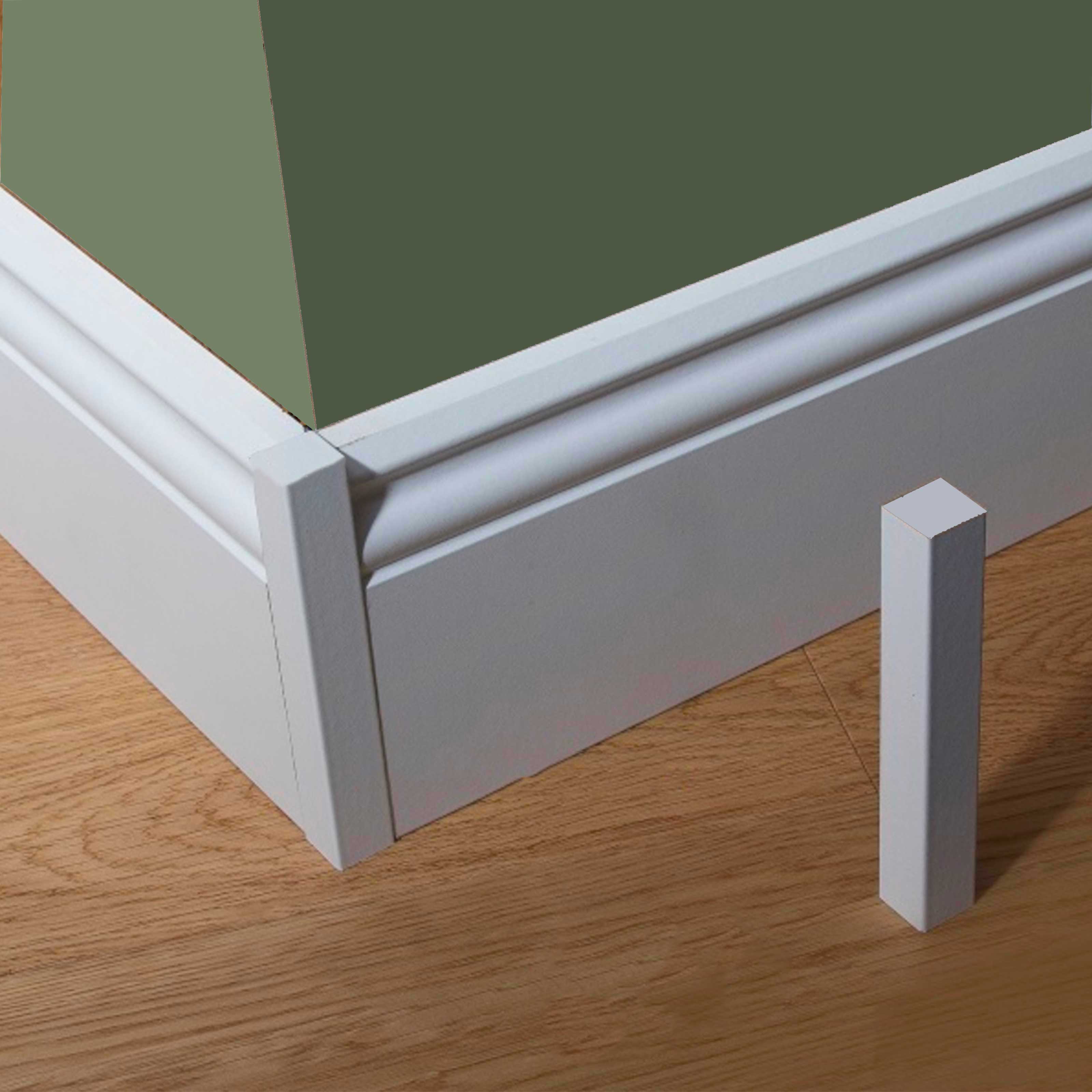 4x Universal Internal And External Corners In Polystructured For All White Skirting Boards, 11 Or 15cm Adaptable