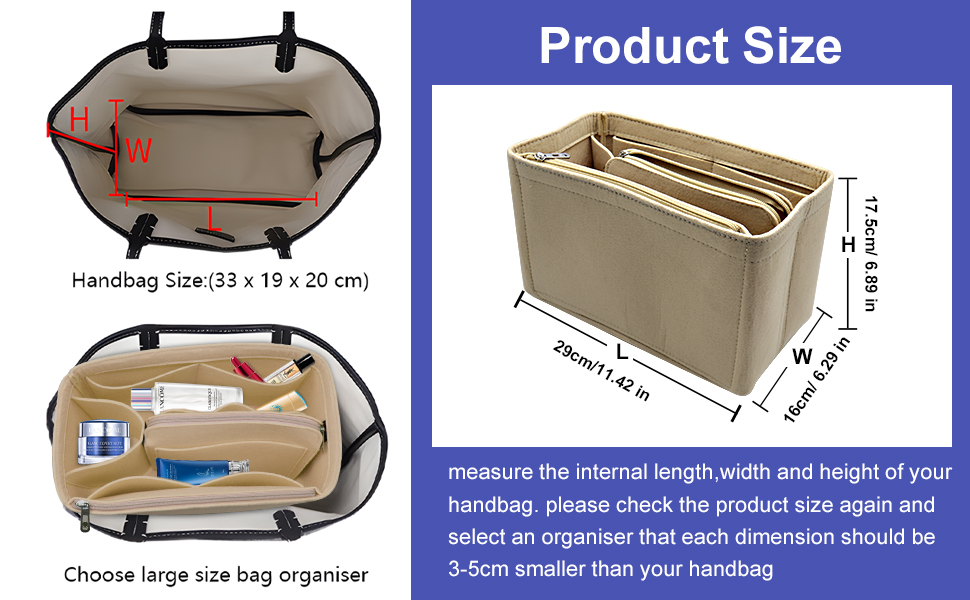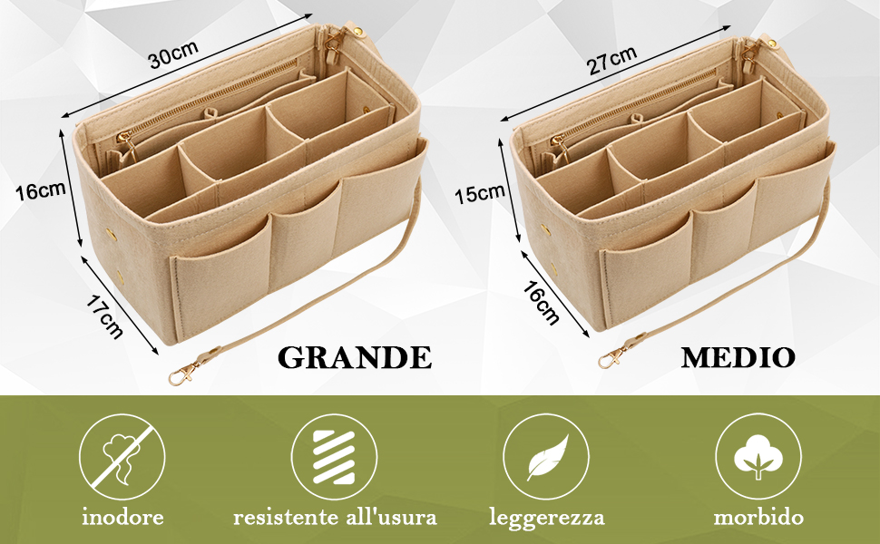Hejo Feltro Organizer Da Borsa Donna, Interno Organizzatore Borsa, Bag Organizer Con Catena Chiave, Interno Borsa Organizer Con Scomparti Multipli, Organizer Borsa Per Cosmetici (Beige L) : Amazon.it: Moda