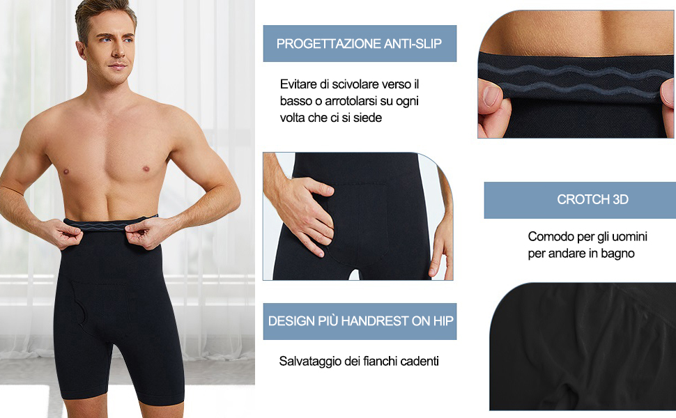 Derssity Boxer Uomo Cotone Vita Alta Compressione Slip Mutande Intimo Sportivo Controllo Pancia Modellante Pantaloncini (B/G,L) : Amazon.it: Moda
