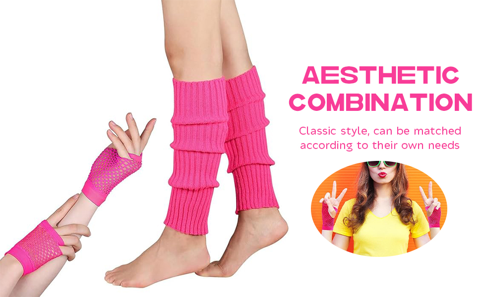 Cintura Scaldamuscoli ELICNA Scaldamuscoli Donna Inverno, 3 Paia Di Scaldamuscoli In Maglia E 3 Paia Di Guanti Senza Dita, Accessori Anni 80/90 Donna Per Feste Neon A Tema Scalda Piedi Da Danza