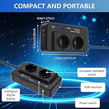 Lo schermo LCD può mostrare la tensione di questo adattatore per auto quando viene collegato all'accendisigari e mostrare la corrente delle porte USB durante la ricarica dei dispositivi elettrici. BOWEICORE 200w Inverter 12v 220v , Con 2 Prese E 4 USB Caricatore Auto , (G5o) ; Numero Oggetto. 388019032749 ; Marca. BOWEICORE ; MPN. ... migliorare la sicurezza e prolungare la vita utile del dispositivo [Caricabatterie per auto multifunzione]L'inverte L'indicatore LED mostra lo stato di funzionamento: funzionamento verde, spegnimento rosso. Protezione Multipla Chip intelligente integrato con design di ricarica sicuro che fornisce protezione da surriscaldamento, protezione da sovracorrente, protezione da sovraccarico, protezione da cortocircuito, protezione da bassa tensione e sovratensione. Schermo Digitale LCD e Indicatore LED Design con schermo LCD che può mostrare la tensione di questo adattatore per presa per auto quando viene collegato all'accendisigari e mostrare la corrente delle porte USB durante la ricarica dei dispositivi elettrici. 【Protezione Multipla e Schermo Digitale LCD】La tecnologia di ricarica sicura può impedire il surriscaldamento, la sovracorrente, il sovraccarico, il cortocircuito, la bassa tensione e la sovratensione della macchina. Forniamo resi e scambi gratuiti con gli inverter. 【Invertitore di Corrente per Auto 200W Alta Qualità】Questo convertitore di corrente per auto fornisce alimentazione continua da 12 V CC a 220 V CA da 200 watt, dotato di 2 prese UE, 4 porte USB possono fornire l'uscita massima a 4,8 A e porte di ricarica QC 3.0 per caricare telefono, laptop, tablet, iPad, lettori DVD, ventilatore per auto, rasoio e fotocamera contemporaneamente. 【Silenzioso e Alta Efficienza】 La ventola di raffreddamento automatica silenziosa incorporata con controllo della temperatura aiuta a dissipare rapidamente il calore e garantisce stabilità durante il funzionamento. Design Portatile Convertitore di potenza è ultra piccolo e leggero, misura 130 x 65 x 32 mm, poco ingombrante e facile da trasportare. Porta Tablet Da Auto 200W Inverter Auto 12V A 220V Onda Modificata Convertitore Inverter 12v 220v Cosa Ottieni Confezione include 1 Inverter per Auto 200 W, 1 Manuale Utente, offriamo 12 mesi di garanzia per resi e cambi gratuiti e un buon servizio clienti. Risparmio Energetico e Sicurezza L'interruttore CA individuale controlla la potenza in uscita per 2 prese CA, che possono caricare in modo sicuro e stabile più dispositivi contemporaneamente.