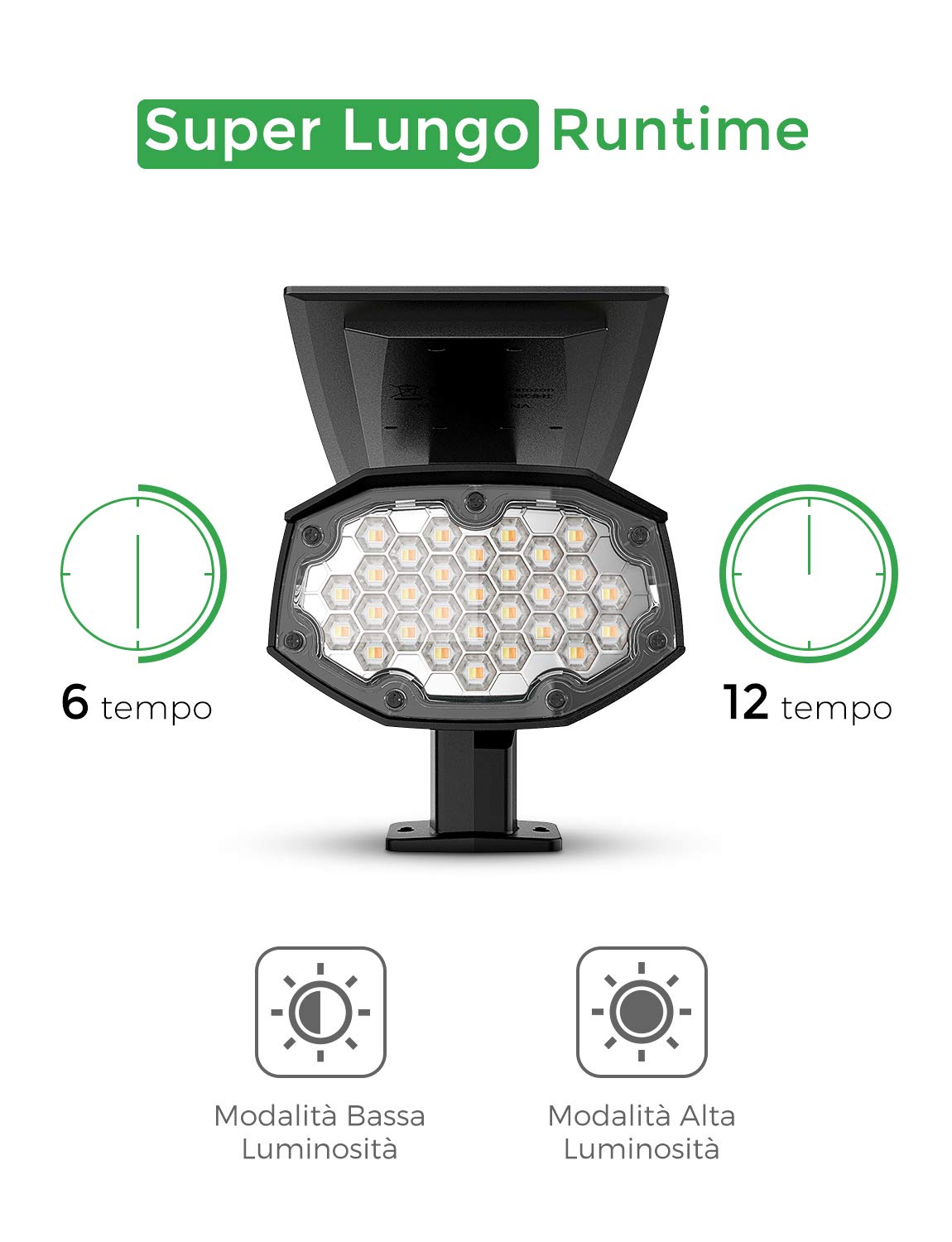 OUSFOT Luci Solari Da Esterno 30LED Faretti Solari Per Esterni Impermeabile Ip65 Con 2 Modalita Di Illuminazione A Terra Per Percorso Vialetto Da Giardino 2 Pezzi