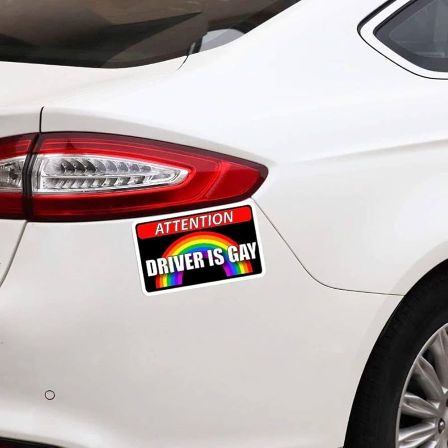 EROSPA® Attention Driver Is Gay Car Sticker - 2 Pack - Rainbow - 11.4 X 6.7 Cm - Car Sticker - Gay Pride LGBT