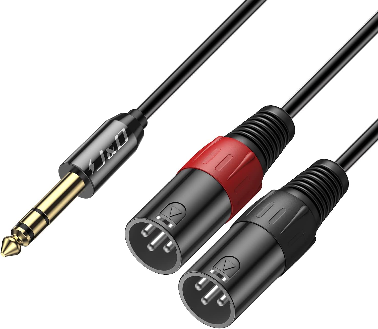 Questo cavo audio stereo J&D da 6,35 mm a doppio XLR collega un dispositivo con una comune porta femmina TRS da 6,35 mm come un mixer a un dispositivo audio con jack XLR Questo cavo è realizzato in rame privo di ossigeno di alta qualità. J&D TRS 6.35mm 1/4 a 2x XLR Cavo Y Spinotto, PVC Sgusciato 2x XLR Maschio a 6,35mm Maschio Unbalanced Audio Stereo Adattatore Cavo di Interconnessione per Speaker Mic Chitarra Mixer AMP, 0,9 Meter Shure Sm58 J&D 3,5mm 1/8 A 2x XLR Cavo Y Spinotto, PVC Sgusciato 2x XLR Maschio A 3.5mm TRS Maschio Unbalanced Audio Stereo Adattatore Cavo Patch Di Scheda Audio Il design a due fili XLR divide il segnale stereo in due segnali XLR mono per una facile regolazione audio, fornendo un'uscita del segnale accurata per esigenze audio professionali e riducendo la distorsione e la perdita del segnale Il secondo canale / destra sul nostro jack TRS da 6,35 mm è collegato al XLR rosso Il materiale di alta qualità garantisce una qualità affidabile e un'ottima esperienza utente.Connettività 1. Perni in metallo placcato in oro 2. Alloggiamento rimovibile 3. Connettore in metallo robusto Facile da staccare, il suo design a molla e il guscio in PVC certificato ROHS offrono una connessione flessibile, durevole e affidabile. Descrizione prodotto Cavo XLR Professionale Il cavo XLR premium J&D non è solo una registrazione professionale con connettore XLR a 3 pin, ma anche un cavo XLR avanzato per apparecchiature di miscelazione e illuminazione, che può essere utilizzato in più scenari.