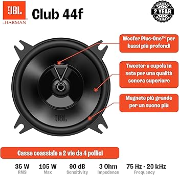 Sub Car JBL Club 864F Gen 3 - Car Speaker Oval By Harman Kardon A Superior 6 X Subwoofer Jbl Potenzia il tuo sistema impianto stereo auto con i nuovi altoparlanti ellittiche JBL Club Gen 3: Prova il suono di alta qualità JBL Signature Sound sulla strada con questi casse ovali auto 6x8 pollici coassiali L'upgrade per un'esperienza musicale coinvolgente: i tweeter delle Club JBL casse 15x20 cm offrono un'ampia gamma di alte frequenze che non diventa mai stridente a qualsiasi livello di uscita e offre un suono super JBL Club 864F Gen 3 - Car Speaker Oval by Harman Kardon a Superior 6 x 8 Inch Car Boxes Upgrade: 60 W RMS 180 W Max, High Sensitivity, Intense Bass and Impressive High Frequency Response Prestazioni potenti per la tua auto: con una potenza di 60 watt RMS e 180 watt di picco, questi casse JBL auto ovale offrono un suono eccellente e ricco anche con sistemi di autoradio a bassa potenza