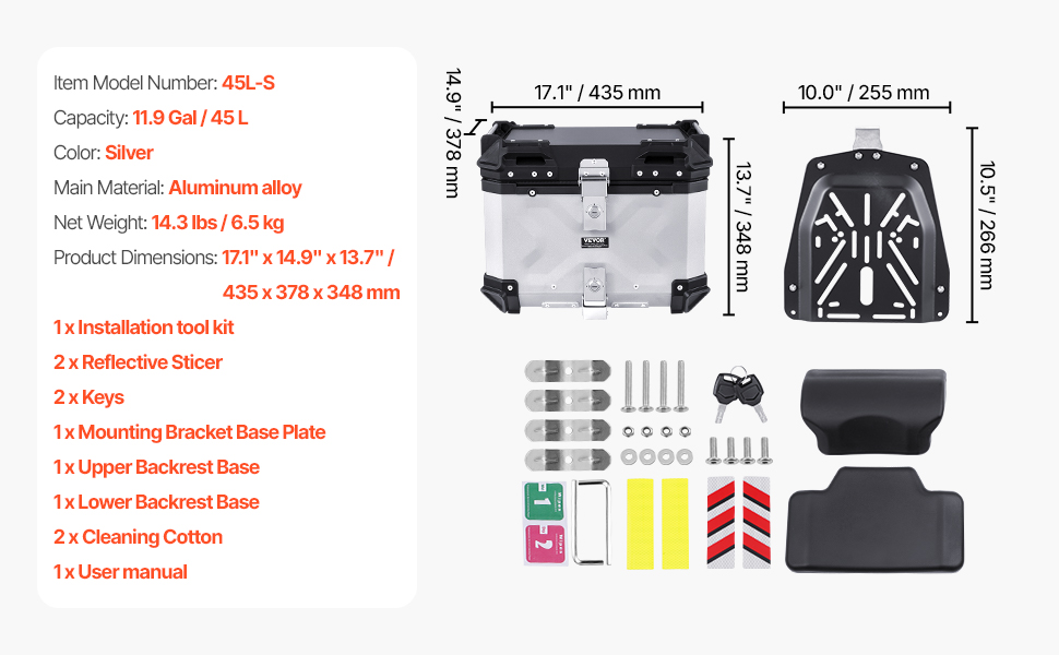 JEDAL Bauletto Per Moto 45L Bagaglio Per Moto Alluminio Bauletto Universale Baule Da Moto Con