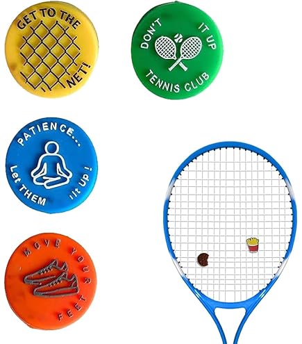 Racchetta Tennis JSZDFSV 1 Ammortizzatore Per Racchetta Da Tennis, In Morbido Silicone, Ammortizzatori Per Racchette Da Tennis Yonex Antivibrazione Ammortizzatore per racchetta da tennis, ammortizzatori per racchette da tennis, divertenti smorzatori di vibrazioni da tennis, ammortizzatori per racchette da tennis, set di 4 ammortizzatori per racchette da tennis Compra YiJPXinADZ Set di 4 ammortizzatori da tennis in silicone, smorzatori divertenti per racchette da tennis, riducono le vibrazioni e migliorano il comfort, ideali per i giocatori a prezzi vantaggiosi. Spedizione Gratuita disponibile per membri Prime su oltre un milione di prodotti Comfort migliorato: il nostro ammortizzatore da tennis da 4 pezzi è sapientemente progettato per ridurre al minimo le vibrazioni e smorzare gli urti, garantendo una presa comoda e prestazioni fluide sul campo. Perfetto per l'uso su racchette da tennis e squash. È un ottimo regalo per amici e familiari che amano il tennis. Design durevole: realizzati con materiali di alta qualità, i nostri ammortizzatori da tennis sono costruiti per resistere a intense competizioni, offrendo durata e affidabilità durature per il giocatore serio. Prestazioni superiori: sperimenta prestazioni e precisione superiori con i nostri ammortizzatori di vibrazioni da tennis.