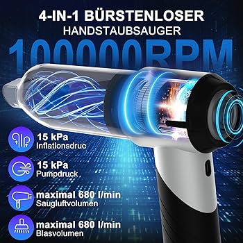 JYNSROU 4 In 1 Aspirapolvere Per Auto, 16000PA Mini Aspirapolvere Pieghevole 90° Portatile Senza Fili, Compressore D'Aria E Aspirapolvere Per Tastiera Con Motore Brushless Per Auto, Casa, Ufficio : Amazon.it: Casa E Cucina