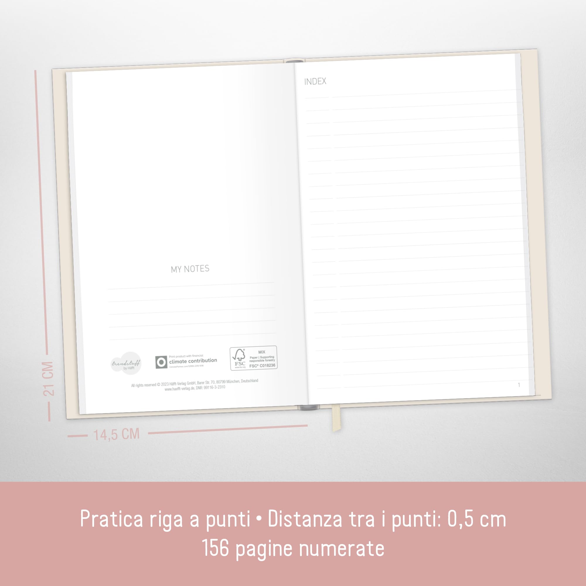 Particolarmente elegante e pratico si possono raccogliere idee, liste delle cose da fare, compiti e progetti nei nostri diari paper&you. L'elaborata rilegatura a filo mantiene le pagine saldamente insieme. Finalmente tutto a colpo d'occhio! This item: Häfft paper&you® Bullet Journal Dotted A5 with Elastic Band, Wild Flower , 156 Pages, Dotted Notebook, Diary - Sustainable and Climate Friendly €7.99 € 7 . 99 Get it as soon as Wednesday, Apr 9 Grazie alla rigatura a pois, i taccuini sono perfetti come bullet journal, ma siamo sicuri che molte idee creative si addormenteranno in te. Non importa quanto sia digitale intorno a noi, la buona vecchia nota scritta a mano non passerà mai di moda! Diario Alimentare Paper&you® Bullet Journal Dotted A5 Mit Gummiband "Dainty Flower" 156 Ex Libris Il tuo compagno fedele: la cover flessibile e allo stesso tempo stabile combina le migliori caratteristiche di copertina rigida e copertina morbida, è impermeabile agli spruzzi e lavabile. Elegante design a busta e caratteristiche accattivanti. inseriti nel taccuino e conservati. Sostenibile e rispettoso del clima: essere creativi con la coscienza che si vuole: la nostra carta di alta qualità da 100 g/m² è certificata FSC (FSC N004440) e stampata in modo rispettoso dell'ambiente. Prezzo equo anche da provare