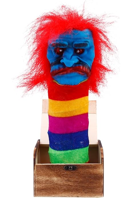 Halloween Party W WIDMANN MILANO Party Fashion 10997 - Jumping And Smiling Clown In Box With Bright Red LED Eyes And Circus Music Activated By Sound Sensor 37 Cm Decoration Halloween Theme Party Clown Halloween Widmann 10997 - Clown che salta e sorridente in scatola, con occhi rossi luminosi a LED e musica circo attivata da sensore sonoro 37 cm, decorazione, Halloween, festa a tema Comparez WIDMANN MILANO PARTY FASHION W 10997 Clown sautant et Rieur dans Une boîte, avec Yeux LED Rouges Lumineux Musique de Cirque, activé par capteur sonore, 37 cm, décoration Halloween, fête à thème chez Questa decorazione horror ha una dimensione di 37 cm ed è composta da un clown che si trova in una scatola. Nel nostro negozio troverete altri bellissimi articoli decorativi e costumi. Clicca sul nome del marchio Widmann sotto il titolo del prodotto Questa spaventosa decorazione a batteria (3 batterie AA incluse) è ideale per Halloween o altri eventi Le animazioni sono attivate da un sensore sonoro