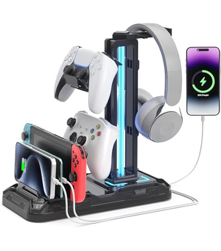 KDD Porta Cuffie Da Scrivania Con Supporto Per Telefono - Porta Controller Staccabile Con 9 Modalità Di Illuminazione, Supporto Cuffie Ruotabile Con Porte Di Ricarica USB, Stand Cuffie Gaming, Nero : Amazon.it: Elettronica