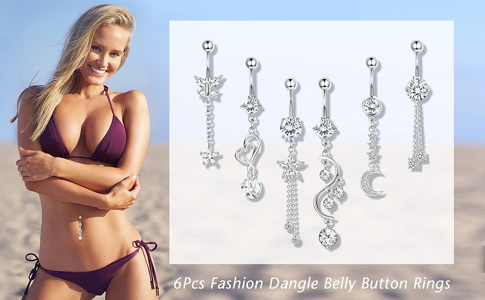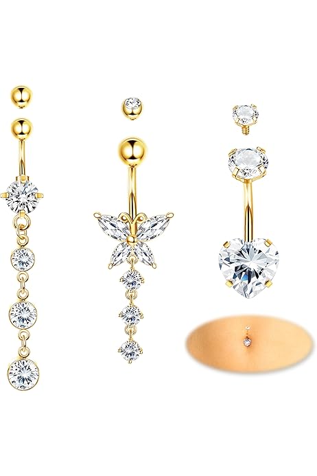 Kakonia 6Pcs 14G Piercing Ombelico Pendenti Per Donna, Pircing Ombelico Donna Brillantino Acciaio Chirurgico CZ Oro Rosa Piercing Ombelico Anello Gioielli Da Piercing Per Corpo : Amazon.it: Moda