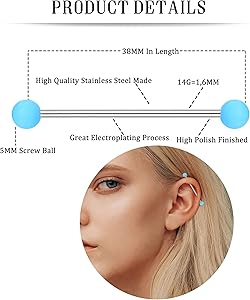 Kakonia Industrial Piercing Gioielli 14G 16G Catena In Acciaio Inox Orecchini Industriali Cartilagine Piercing Orecchini Bilanciere Industriale Per Le Donne Degli Uomini D'argento : Amazon.it: Moda