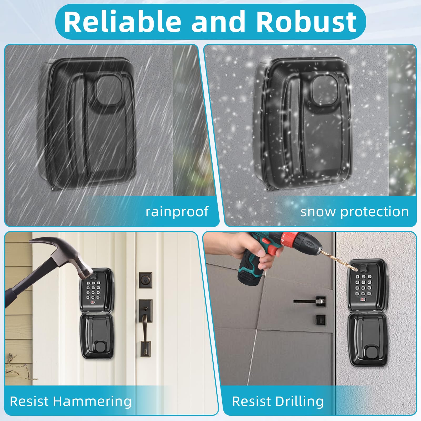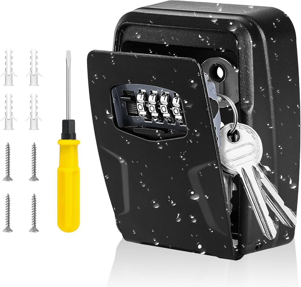 【Ampia gamma di applicazioni】Si tratta di un portachiavi digitale a combinazione di alta qualità per uso interno, che consente di conservare le chiavi mentre si è al lavoro o in vacanza. (Suggerimento: scattare una foto o annotare la password da ricordare). Mini Cassaforte Key Box A Parete Mini Key Safe Key Box Esterno Con Codice Numerico A 4 Cifre Resettabile Portachiavi Impermeabile Per Casa, Scuola, Ufficio, Fabbrica, Garage Cassaforte Piccola 【Design robusto e durevole】La cassaforte digitale a combinazione di chiavi è realizzata con una robusta cassa di fusione in lega di zinco con un'eccellente difesa contro gli attacchi di martelli o trapani. 【Installazione semplice】La cassaforte per chiavi con codice digitale viene fornita con istruzioni in 7 lingue, un cacciavite e un kit di montaggio (4 viti + 4 tasselli a espansione) per garantire un'installazione stabile su qualsiasi parete. Ideale per casa, garage, ufficio, scuola, ecc. La grande cassaforte per chiavi con codice digitale offre uno spazio di archiviazione interno sufficiente e altamente sicuro per i vostri oggetti di valore Il suo design impermeabile, antipolvere e antiruggine la rende adatta all'uso esterno a lungo termine e in grado di resistere a sole, pioggia e neve. Basta inserire il codice corretto per recuperare rapidamente e facilmente le chiavi necessarie, risparmiando tempo e fatica. Adatto per l'ingresso di emergenza, parenti e amici, agenti immobiliari, pet sitter e così via.
