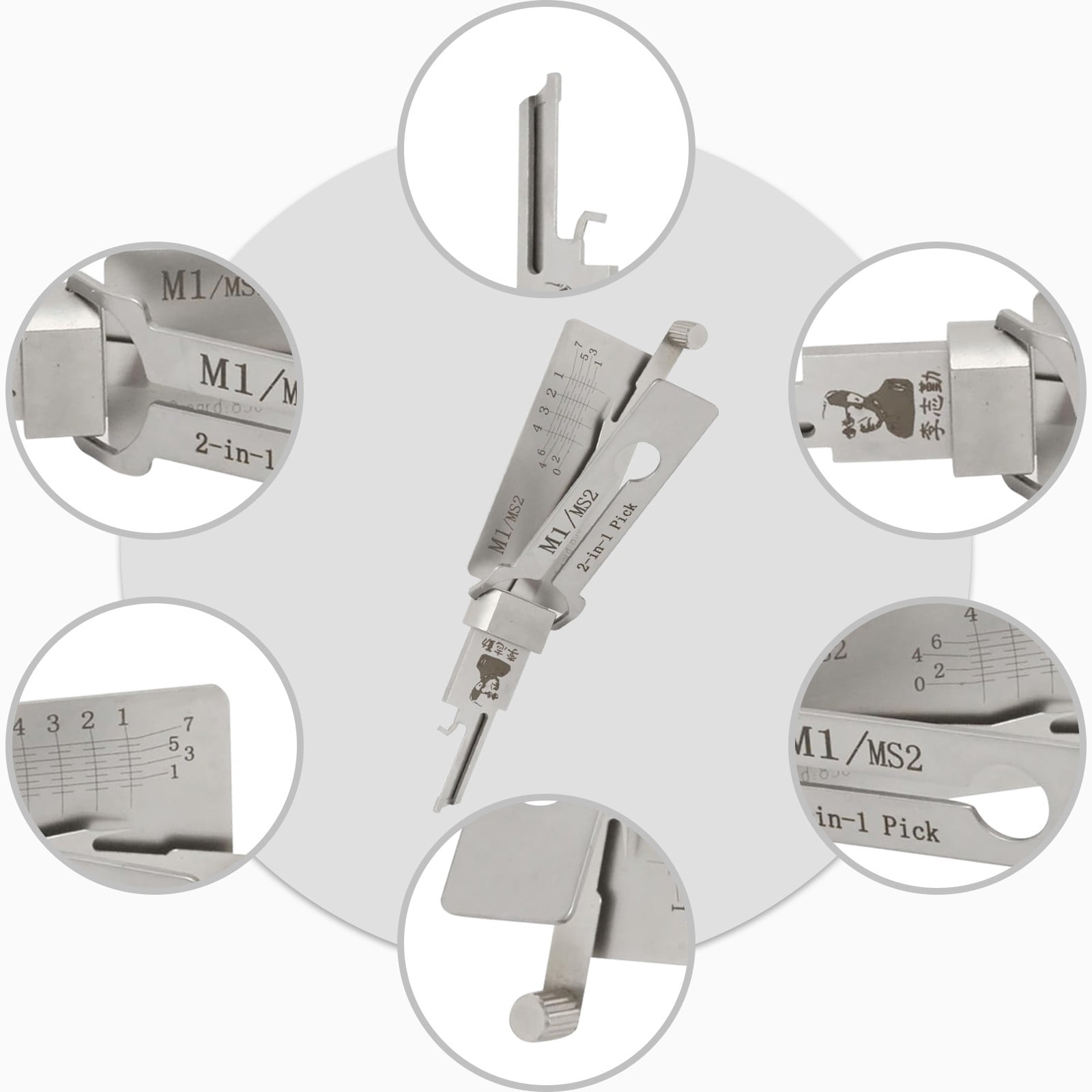 Stainless Steel Key Decoder,2 In 1 Decoder E Pick Tools,Key