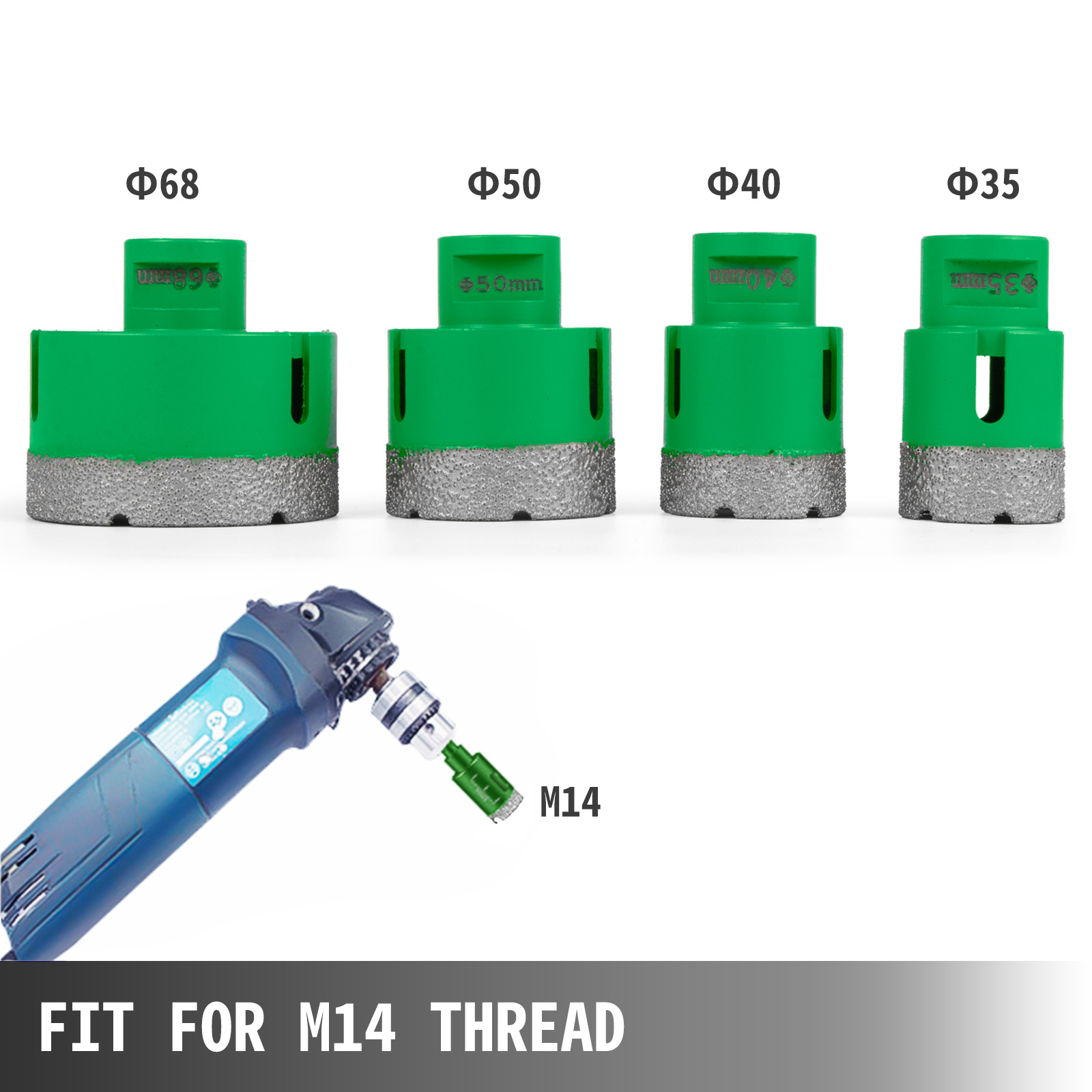 VEVOR Punta Diamantata, 4 Pezzi Peso 0,87 Kg Diametro 25/35/50/68 Mm QHKZ4PCS Frese A Tazza Diamantate Per Smerigliatrice Angolare M14 Per Forare Materiali Duri Come Ceramica, Marmo, Muratura, Granito : Amazon.it: Fai Da Te