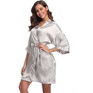 Kimono Corto Da Donna In Raso Setoso Accappatoio Sposa Damigelle D'onore Prepararsi Pigiameria Morbida Camicia Da Notte Camicia Da Notte Con Supporto, Nero , S : Amazon.it: Moda