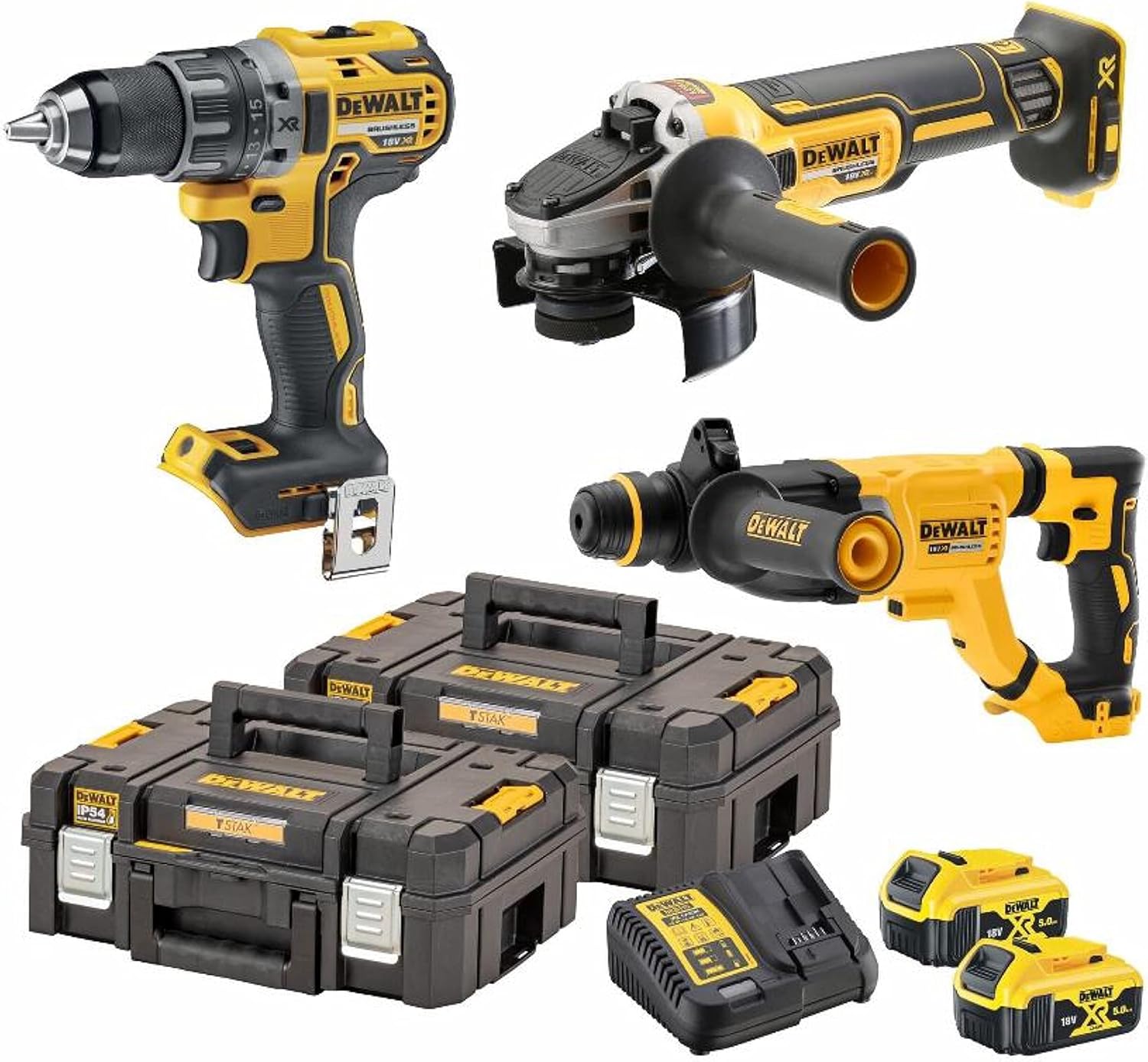 CONTIENTE: Il kit è composto da un trapano avvitatore a percussione Compact XR 18V DCD796, perforatore SDS-plus XR 18V Brushless 2J DCH273, avvitatore a urti XR 18V Brushless DCF887, 3 batterie XR 18V 5Ah Li-Ion e scatola TSTAK II Dewalt Kit Kit 3 Batterie XR 18V 5Ah Brushless DCF620 + Trapano A Percussione DCH133 Dewalt Avvitatore Kit 3 strumenti XR 18 V 5 Ah brushless DEWALT trapano avvitatore DCD800 + perforatore SDS plus DCH172 + smerigliatrice angolare DCG405 - DCK355P2T-QW