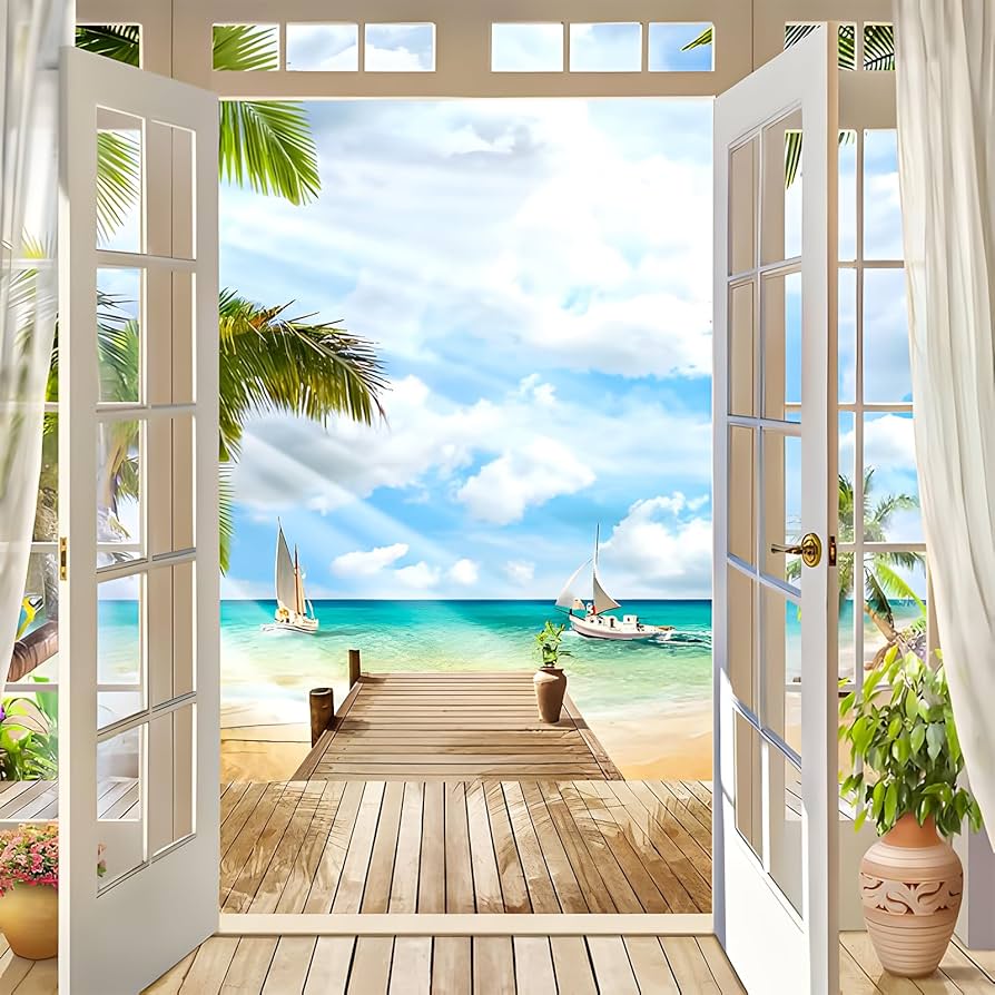 Diamond Painting Kit Completo Paesaggio Marino, Finestra Sulla Spiaggia
