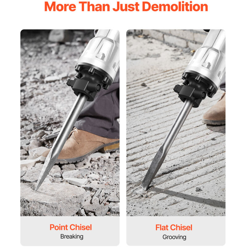 VEVOR Martello Demolitore Per Calcestruzzo 2200W 2 Punte A Scalpello Per 1400BPM, Kit Di Martello Demolitore Elettrico 220V Per Lavorazione Su Cemento Mattoni Piastrelle Demolizione Per Muro 66J