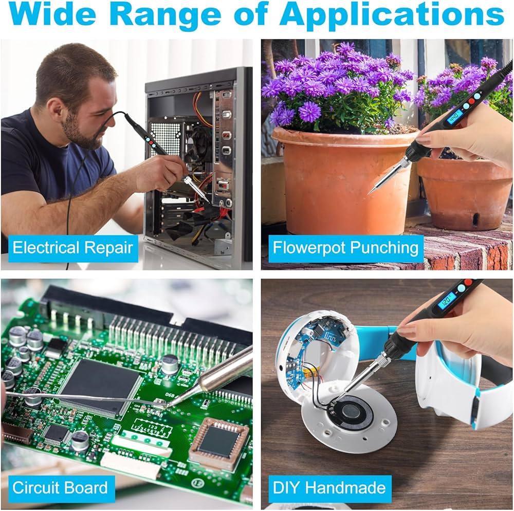 Saldatore Laser Metalli Portatile Saldatore Kit, ICONNTECHS Saldatore Elettrico Regolabile, 220V 60W, Con Saldatore Elettrico 60 Watt DESIGN: Stilo ergonomico blu con impugnatura confortevole per un controllo ottimale durante l'uso CARATTERISTICHE: Cavo di alimentazione lungo e resistente, punta in rame di alta qualità per una conduzione termica efficiente Saldatore Kit 60W Saldatura a Stagno Elettrico Temperatura Regolabile 220-480℃ 4 Punte per Saldatore Pompa Dissaldante Supporto per Saldatore filo di stagno, pinzetta, Adatto a Manutenzione 387 €19,99 € 19 , 99 ACCESSORI: Include filo di stagno da 1mm e 14g per iniziare immediatamente i lavori di saldatura