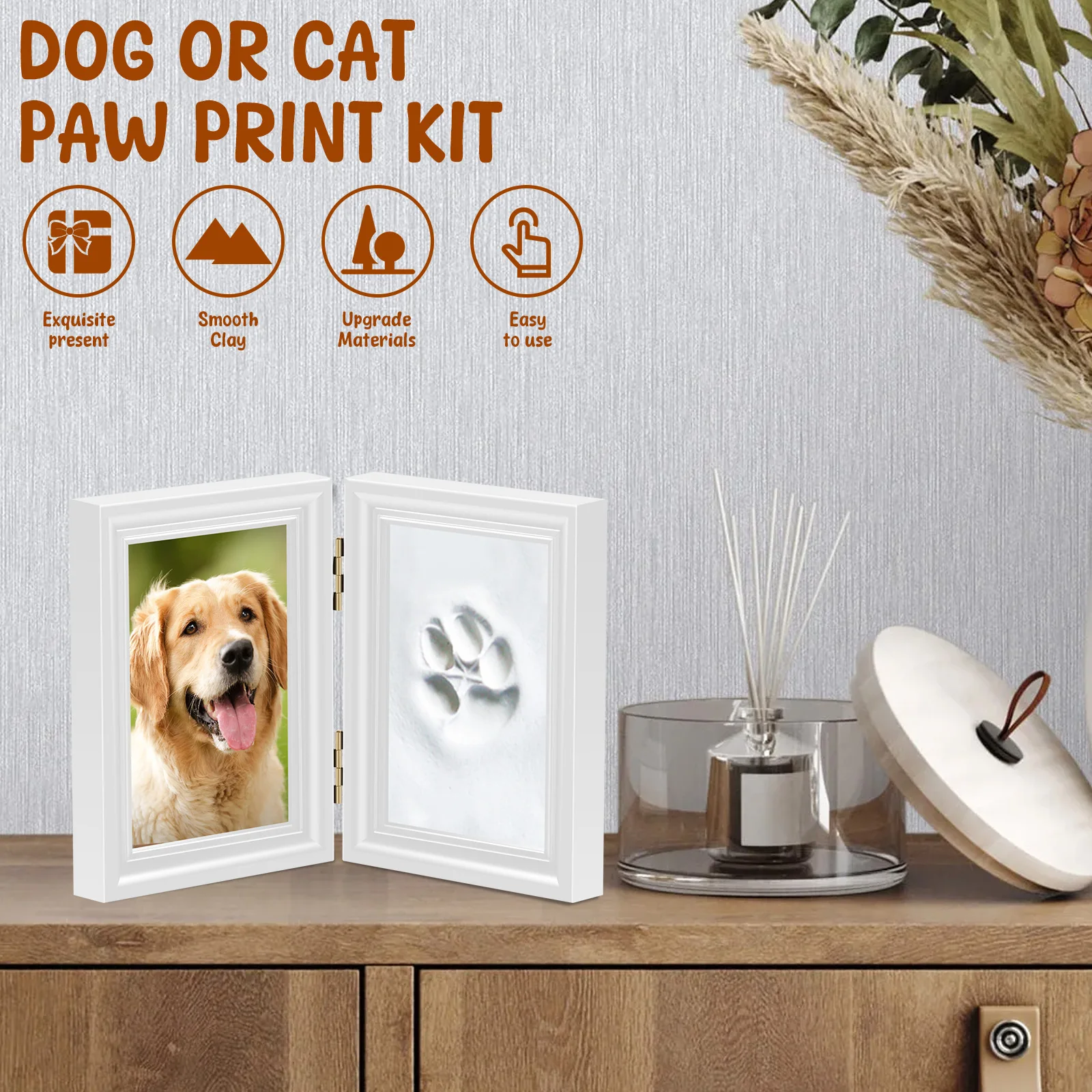 SJLCRT Kit per impronte di zampe di cane o gatto, kit per impronte di zampe di animali domestici con argilla, kit artistico per impronte di animali domestici , cornice in legno, per cani e gatti Durevole e sicuro: la nostra argilla è atossica e sicura per gli animali domestici, garantendo un ricordo sicuro e di lunga durata che puoi custodire per gli anni a venire. Versatile opzione di sospensione: il kit include un nastro per appenderlo facilmente, che consente di visualizzare l'impressione della zampa in casa o ovunque tu voglia. Kit Impronta Kit Per Impronte Di Zampe Di Animali Domestici In Argilla, Ricordo Per Ricordo Cane Quantità generosa di argilla: ogni kit include 100 g di argilla facile da modellare e asciugare all'aria, fornendo materiale sufficiente per fare 3-4 impronte di zampe di medie dimensioni. Ricordo duraturo: cattura un momento prezioso nella vita del tuo animale domestico o crea un ricordo commemorativo con questo kit di impronte di zampe di argilla.