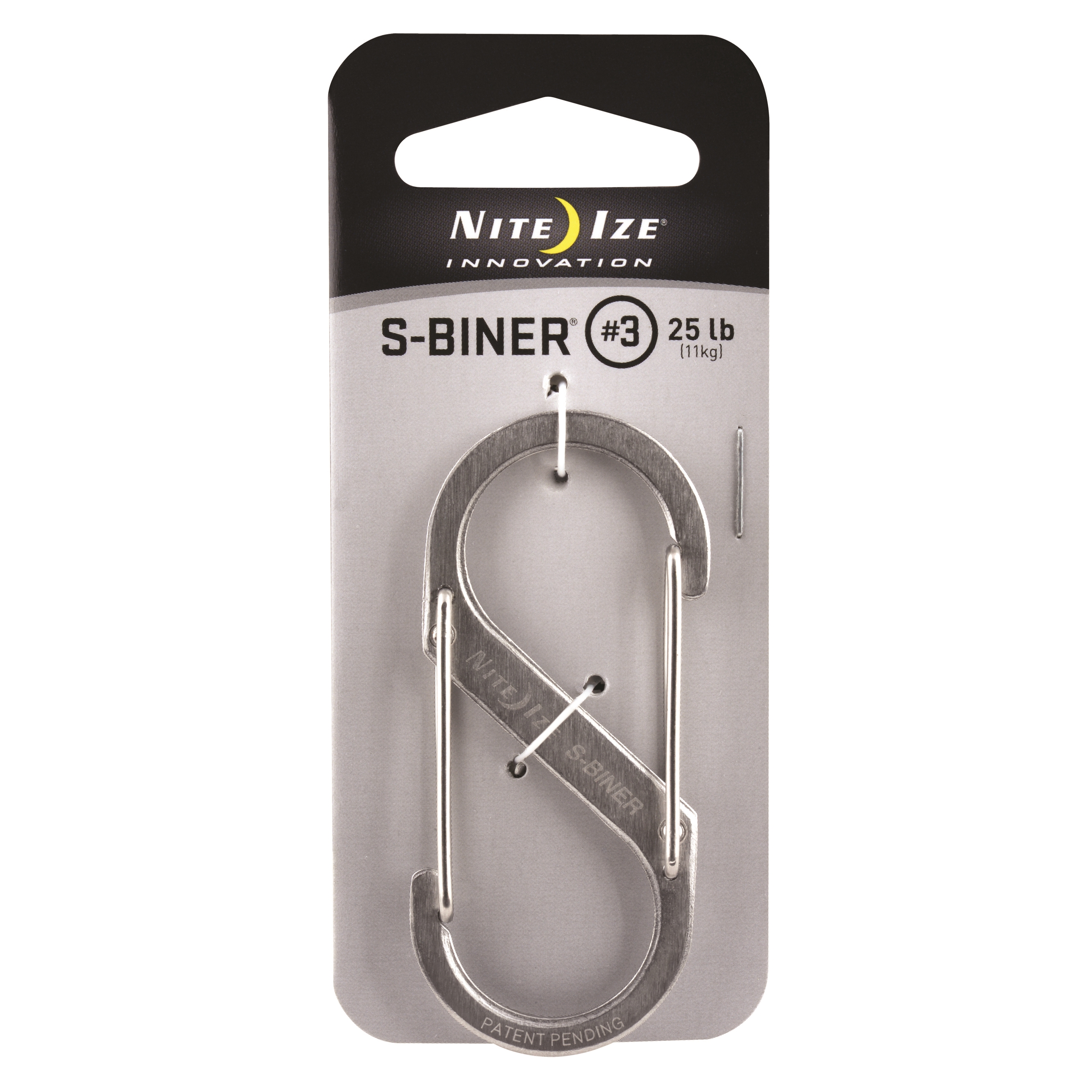 Nite Ize Carabiner Kjøp Nite Ize A-Biner Size #3 Black Nite Ize Biner 3 Nite Ize S-Biner 3 Black. 6.6 x 2.8 cm. Non adatto per scalate. Finitura nera titanio. Nite Ize Kit di sopravvivenza Multicolore The medium-size S-Biner #3 works great for hanging items from a backpack strap or luggage; Also works well for bigger jobs like hanging a paint can from a ladder or clipping a tool to your tool belt; Rated to hold up to 25 lbs. High-quality stainless-stee Carico massimo di 25 libre. Costruzione in acciaio.