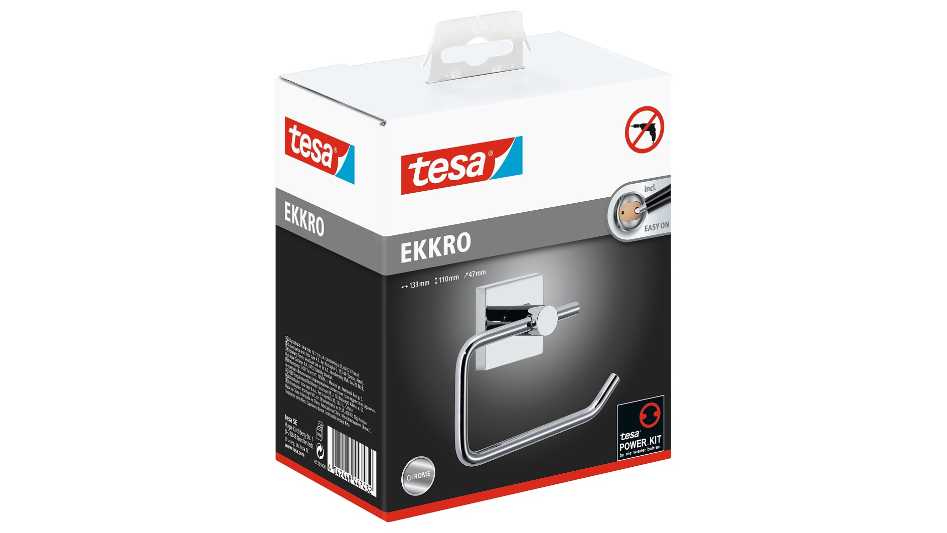 Porta Asciugamani Bagno Tesa Klaam Portarotoli Carta Igienica, Metallo Cromato Porta Carta Igienica Applicazione adesiva: il porta carta igienica di design tesa Klaam usa la tecnologia brevettata tesa Power Kit, soluzione adesiva all-in-one, per un montaggio sicuro e duraturo Facile da montare: Tutto il necessario è incluso, non servono altri attrezzi; Pulire la superficie; con acqua o alcool puro; Premere l'adattatore alla parete; Riempire l'adattatore con adesivo finché non compare nel foro piccolo; Lasciare stabilizzare l'adesivo per 12 ore; Applicare l'accessorio all’adattatore; il supporto può essere facilmente rimontato altrove con adattatore BK20 IN STOCK: Portarotoli carta igienica tesa Klaam , metallo cromato , autoadesivo , tecnologia di montaggio adesiva , 95mm x 142mm x 47mm, 4042448447692 al miglior prezzo. Consegna rapida in tutta Italia Nessun danno: Non serve il trapano, così pareti e piastrelle restano intatte; Anche dopo l’eventuale rimozione del supporto non restano tracce di adesivo