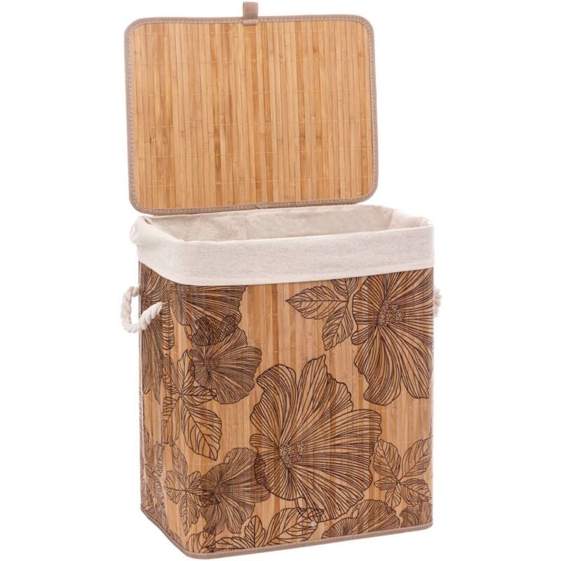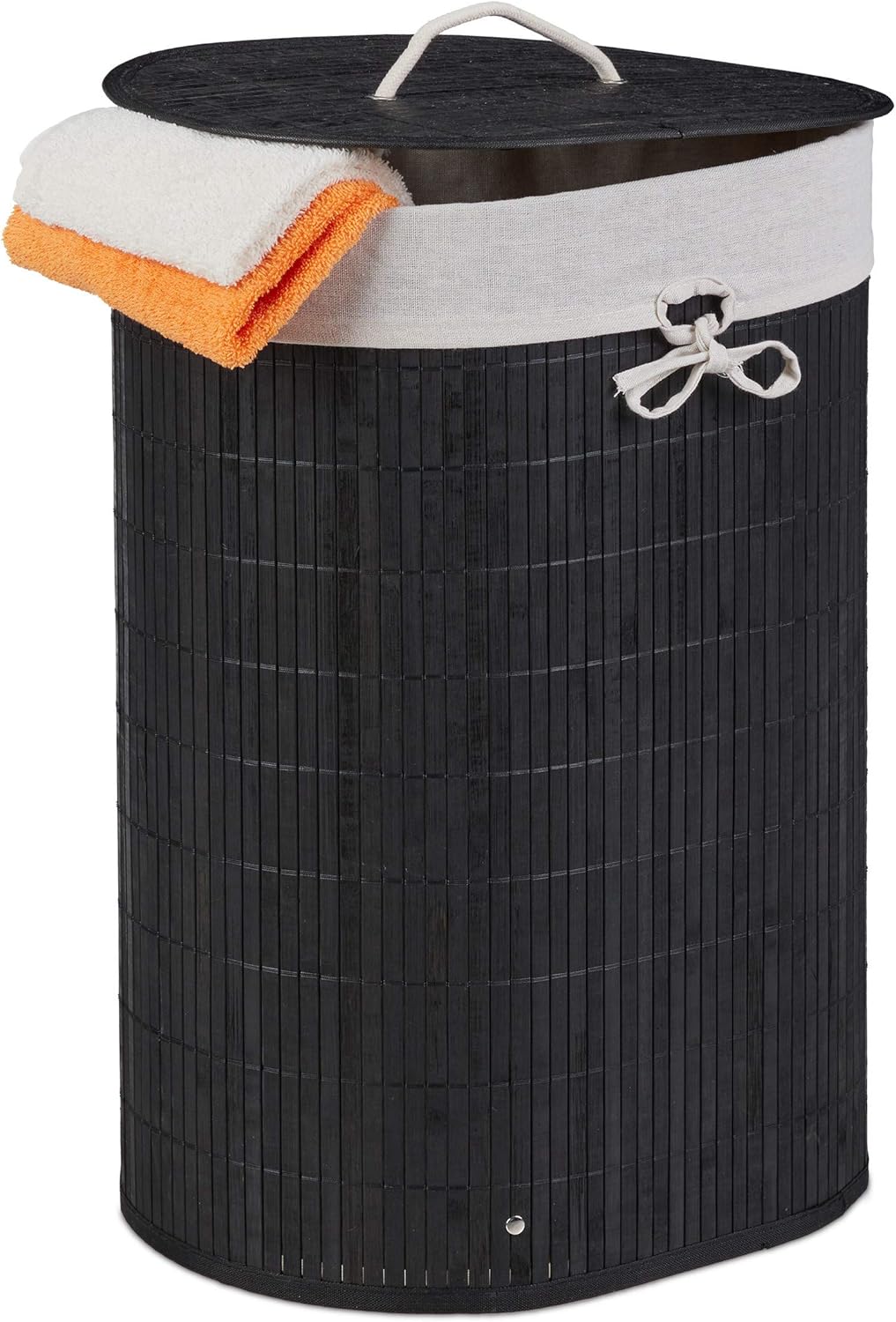Relaxdays Cesto Portabiancheria, 32 L, Con Coperchio, In Bambù E Tessuto, HLP 61 X 40 X 36, Per