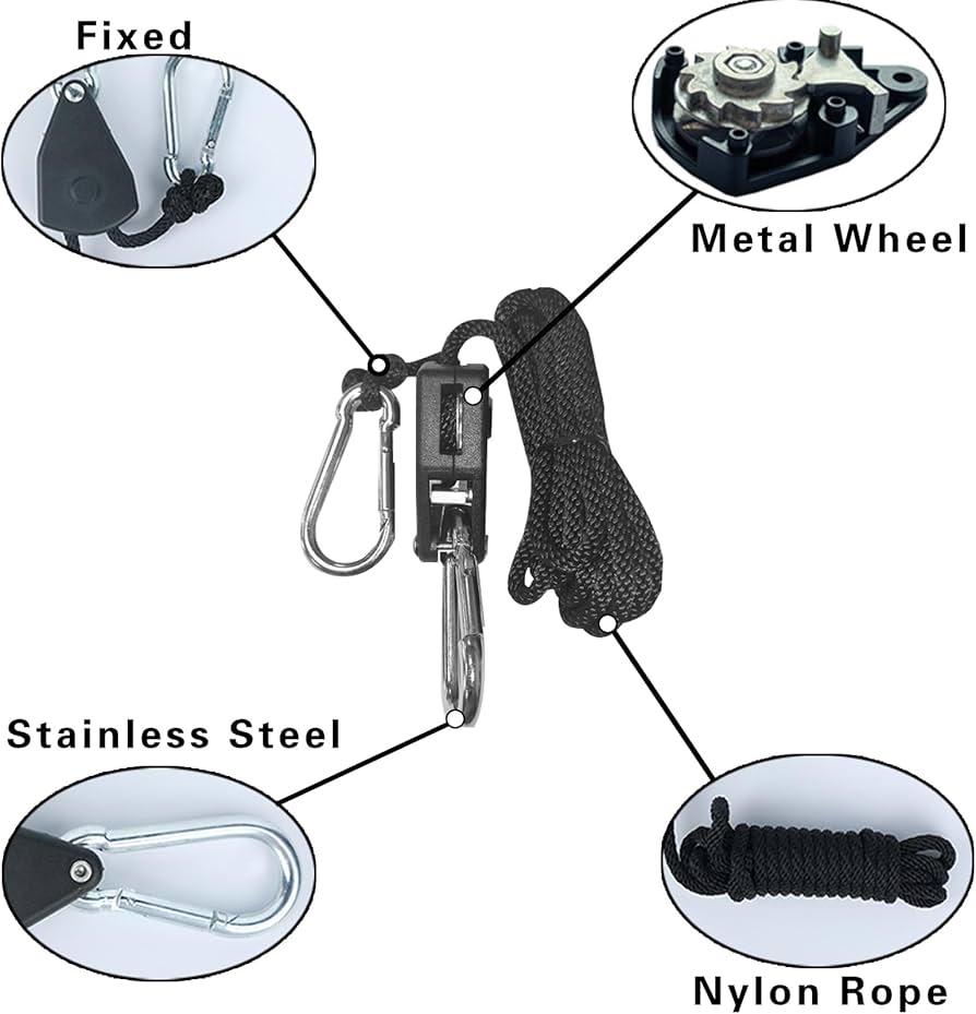 LALAGO 8 Pezzi Gancio A Cricchetto, Corda Regolabile Gancio A Cricchetto 2M, 1/8 Di Pollice Corda Gancio Corda Tirare Corda A Cricchetto Per Piante Ventilatore Luce Houseplants : Amazon.it: Fai Da Te