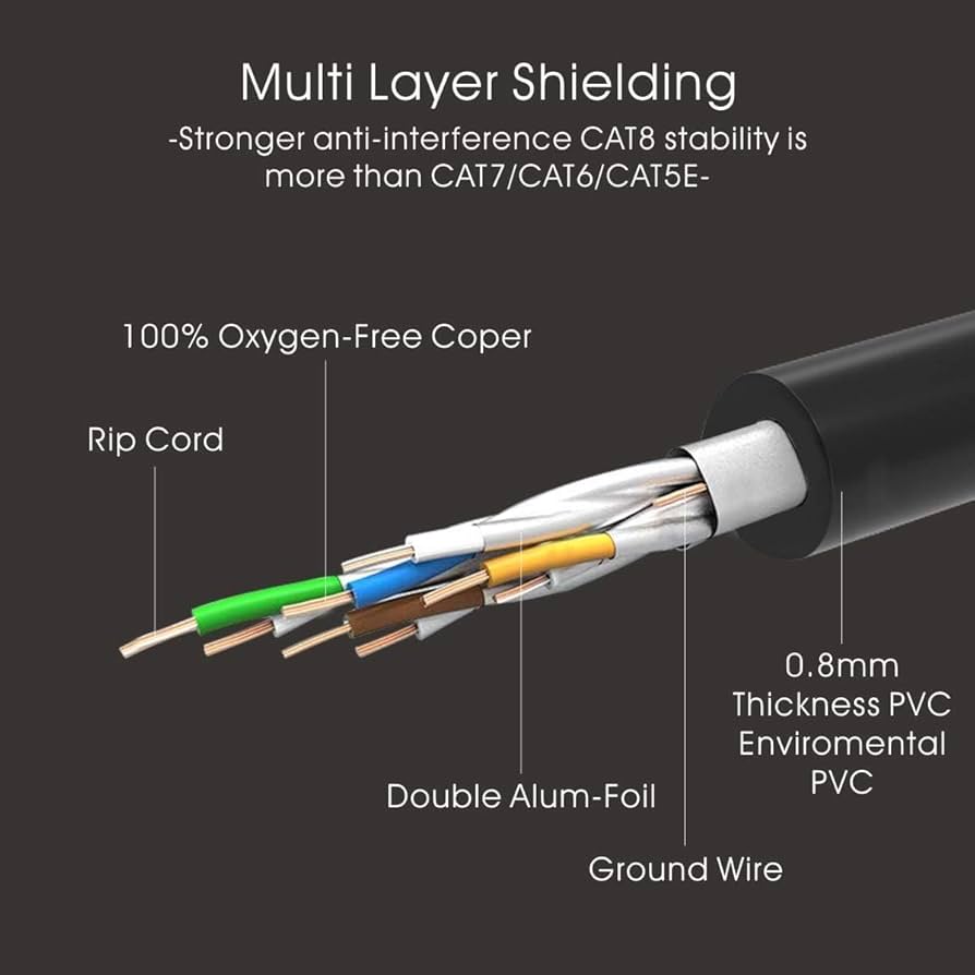 Il nostro cavo ethernet Cat 8 RJ45 Veetop , ti offre un'esperienza Internet più fluida e veloce, soddisfa perfettamente i requisiti futuri di velocità e larghezza di banda. Alta velocità a 40 gbps Cavi di rete Veetop - Garanzia di rimborso al 100 cento per cento: se hai qualcosa con i nostri prodotti, non esitare a contattarci, il nostro servizio clienti ti risponderà entro 24 ore Compatibilità universale: il cavo dsl di installazione Cat 8 è compatibile con Cat6 e Cat5. Cavo eternet ideale per giochi online, ethernet cable per Smart Home, ecc Ps4 Pro Veetop Cavo Ethernet LAN 10m Cat 8 RJ45, SFTP Velocità Cavo Cavo Fibra Ottica Design: il nostro cavo rete cat 8 è estremamente flessibile, robusto e misura solo 6,5 mm di diametro. Qualità: un cavo ethernet cat 8 SFTP che offre bassa immunità ai disturbi, superfici di contatto placcate RJ45 o resistenti alla corrosione