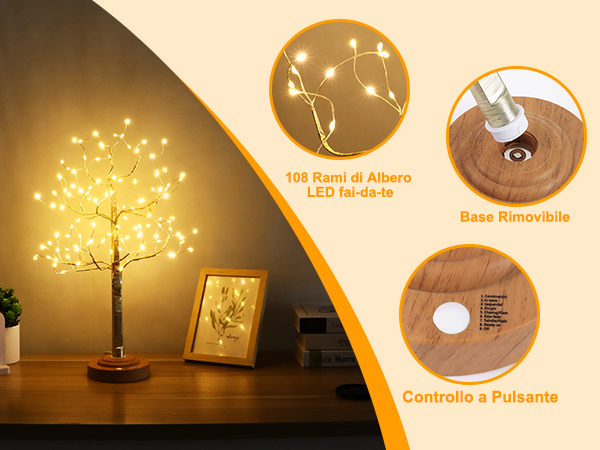 【Dotato di telecomando】Questa base Albero luminoso lampada da tavolo è dotata di un interruttore touch, che può essere acceso e spento con un leggero tocco. I rami sono sufficientemente morbidi e flessibili da soddisfare le tue esigenze fai da te e possono essere utilizzati come lampade da comodino per decorare la stanza, il soggiorno, per decorare le feste e altro ancora. Compra vsshe Albero Led Regolabile, Albero Bonsai LED , 108 Leds Lampada ad Alberos Illuminata, 8 Modalità, a batteria/USB, con Telecomando, Luci A Alberi Rami Pieghevoli per Natalizie, Pasquali, Soggiorno.. SPEDIZIONE GRATUITA su ordini idonei Fuoco Finto Vsshe Albero Led Regolabile, Albero Bonsai LED, 108 Leds Lampada Ad Alberos Illuminata, Modello Di Ricarica/USB, Luci A Alberi Rami Pieghevoli Per Natalizie, Pasquali, Soggiorno,Argento Lampada Usb Da Tavolo 【Facile da installare】Questa 108 LED decorazioni lampada albero è composta da tre parti: corpo luce, base e alimentatore (batteria AA o alimentatore USB). 【Regalo perfetto】Luce alberi rame decorativo regolabile rami non sono solo una bella decorazione o luce notturna, ma anche un regalo perfetto per la famiglia e gli amici per Natale, Ringraziamento, compleanni o altre occasioni. 【Luci per alberi fai da te】Questi rami sono flessibili e pieghevoli, puoi piegarli nella forma che preferisci, i rami LED dorati e lucidi possono aggiungere un tocco di brillantezza a qualsiasi fiore, pianta o centrotavola, creando un'atmosfera festosa diversa e un ambiente caldo. Basta collegare la lampada alla base e collegarla a una fonte di alimentazione. 【Luci LED romantiche per alberi】Questa LED bonsai lampada da tavolo è dotata di 180 lampadine LED a luce calda, sicure e a risparmio energetico, che creano un effetto affascinante e romantico.