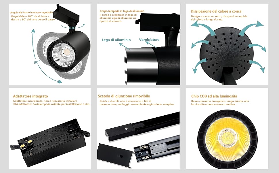 [Servizi professionali] Il negozio diretto Bravsekai possiede fabbrica propria. Rispetto ad altri, qualità e rapporto qualità-prezzo sono i nostri vantaggi. Scopri ora le nostre proposte e trasforma il tuo soffitto in un'oasi di luce e stile! Grazie all'illuminazione a binario LED per il soffitto, è possibile creare un'atmosfera moderna e versatile in qualsiasi ambiente [Installazione fai-da-te] Il sistema include 6 apparecchi luminosi, 1 connettore a I e 1 a L, e 2*1m di binari. Verificare il tipo di binario prima dell'ordine, questa testa luminosa per binari a H non è adatta per binari Juno o Lightolier. Benvenuti a visitare lo Store Amazon Bravsekai, offriamo anche accessori per illuminazione a binario elettrificato, plafoniere a incasso e apparecchi per lampadari sospesi. Ci impegniamo a servire bene ogni cliente, per qualsiasi domanda non esitare a contattarci. [Ampia applicabilità] I kit di illuminazione a binario elettrificato Bravsekai sono perfetti per negozi al dettaglio, ristoranti, soggiorni, cucine, sale conferenze, gallerie e studi. [Compatibile con binario a H-Tipo] Questo kit di illuminazione a binario è adatto per sistemi di illuminazione a binario elettrificato H-Tipo 3 fili 1 circuito. [Dimensioni extra large e luminosità elevata] I nostri kit di illuminazione a binario elettrificato aggiornati equivalgono a 2* lampadine GU10, l'angolo di illuminazione apre la massima utilizzazione dello spazio, ideali per luoghi con grandi esigenze di luminosità elevata. Binario Per Luci A Led Teste Di Illuminazione A Binario LED , 6.5 W 3000, K 470 Lm 3 Faretti Moto