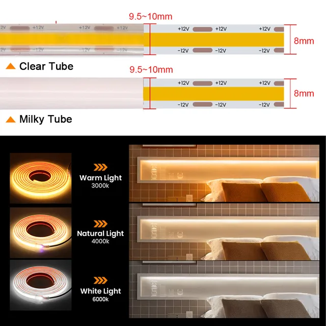 HEGEHE Luce Al Neon LED COB 12V, Striscia LED FCOB Super Luminosa Da 320 LED /m, Nastro Autoadesivo, Flessibile Impermeabile IP68, Illuminazione Per Interni Ed Esterni [0,5 M, Bianco] : Amazon.it: Illuminazione