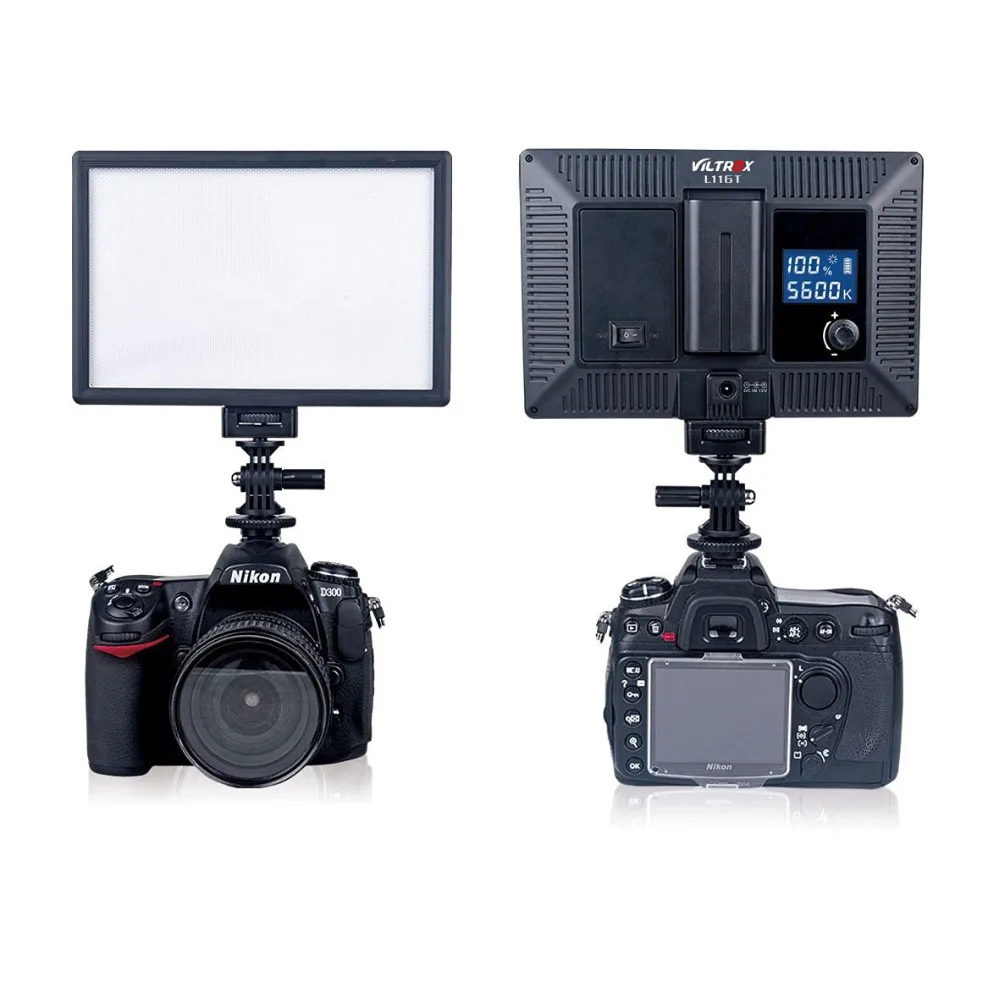 La piastra di guida della luce rifrange e riflette la luce: calore basso, riflessione diffusa, luce morbida senza abbagliamento. Facile da usare: è possibile cambiare la modalità di luminosità e la modalità temperatura del colore semplicemente premendo il pulsante di regolazione e ruotandolo per modificare la percentuale di luminosità e il parametro della temperatura del colore. Luci Video VILTROX L116T Pannello Luminoso Video A LED Dimmerabile Bicolore 3300-5600k CRI95+Luce Per Telecamera A Pannello Ultrasottile Per Conferenze Podcast Trasmissione In Diretta Streaming In Diretta Luce Per Video Tiktok Il colore della luce è reale: CRI≥95, che è più vicino alla luce naturale. Puoi metterlo nella borsa della fotocamera e portarlo ovunque. Batteria al litio NP-F550 / F750 / F960 serie, 12V / 2A, DC005 superficie generale (non inclusa!!!) VILTROX L116T Pannello luminoso video a LED dimmerabile bicolore 3300-5600k CRI95+Luce per telecamera a pannello ultrasottile per conferenze Podcast Trasmissione in diretta Streaming in diretta Adatto per fotografia interna ed esterna, video, live streaming, studio, YouTube e Tiktok. Può essere ruotato di 360° per riempire la luce in tutte le direzioni. Peso netto: 260 g. Leggero e portatile. Lo schermo LCD mostra chiaramente le informazioni sulla luminosità, la temperatura del colore e la batteria.