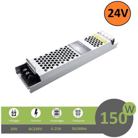 Trasformatore Led 24v 150w TRASFORMATORE LED PREMIUM / ALIMENTATORE LED CERTIFICATO 150W / 24V( MADE IN EUROPE) | Leroy Merlin Trasformatore 220 24v APPLICAZIONI MULTIPLE: Il nostro trasformatore LED AC-DC 24V è ideale per una varietà di applicazioni LED, inclusi strisce LED, lampadine LED e altri dispositivi di illuminazione LED, fornendo un'uscita stabile di 24V DC 6.25A. DUREVOLE E SICURO: Impermeabile IP67 con protezione contro sovracorrenti e sovratensioni, garantendo una lunga durata e un utilizzo sicuro. IN STOCK: Trasformatore led 150w 6.25a alimentatore led 24v dc per striscia e lampadine driver , VVS15024V al miglior prezzo. Consegna rapida in tutta Italia INSTALLAZIONE FACILE: Il trasformatore DC 24V viene fornito con due connettori, facile da installare e da utilizzare, semplificando e accelerando l'installazione delle tue soluzioni di illuminazione LED.