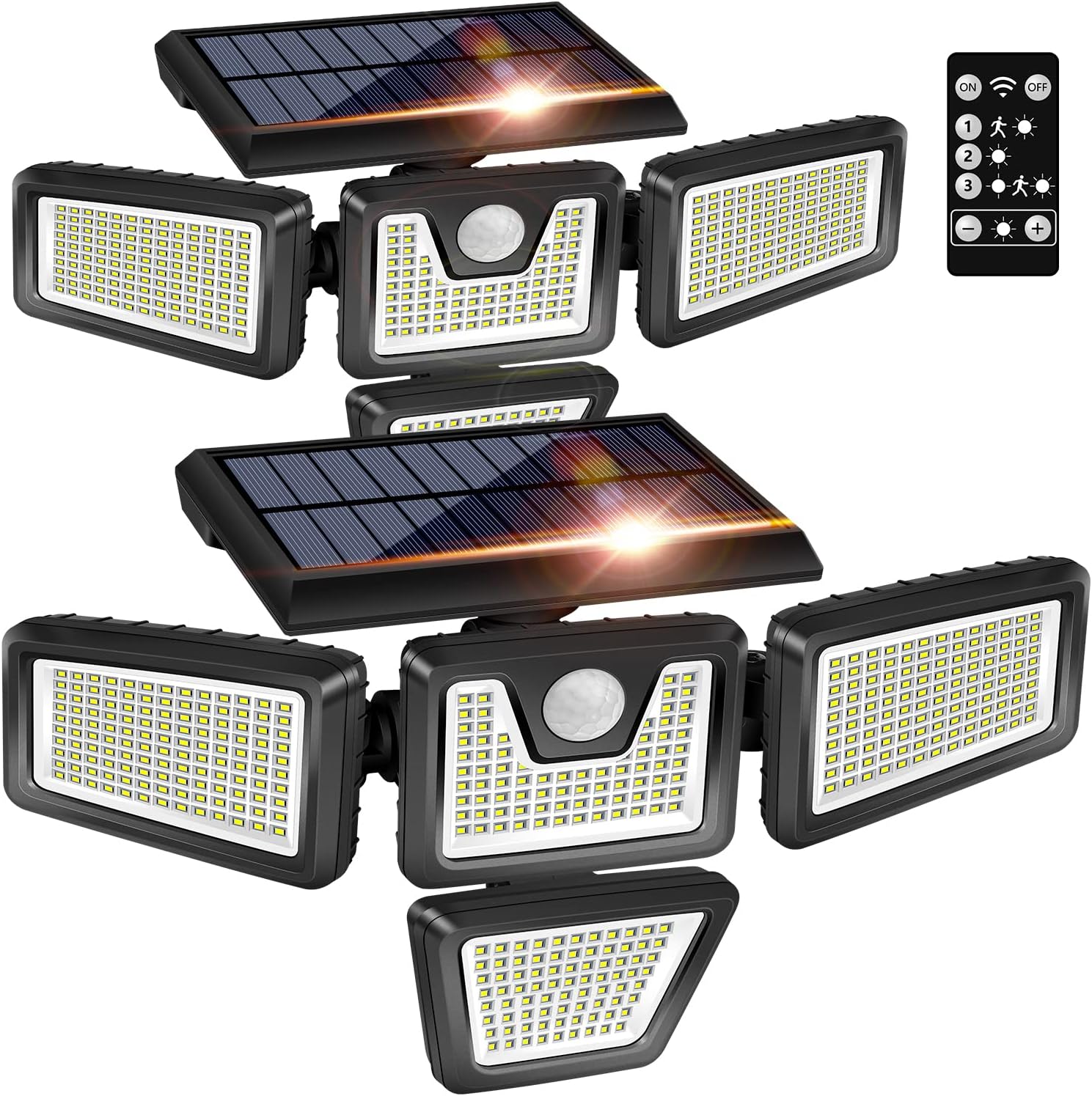 Claoner 128 LEDs Luce Solare LED Esterno, Lampade Solari Da Esterno Con Sensore Di Movimento IP65 Impermeabile Lampade Da Parete Solare 3 Teste