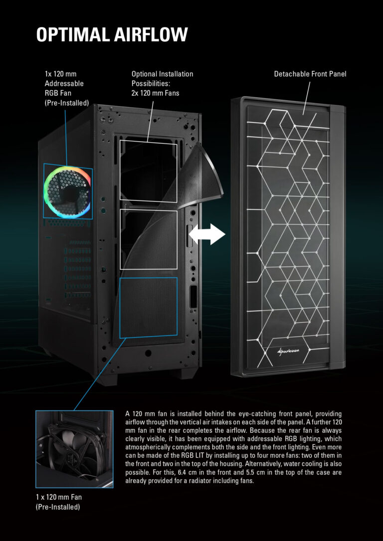 L'RGB LIT può montare inoltre fino a quattro ventole supplementari: due frontalmente e due nella parte superiore del case. Illuminazione efficace dell'hardware Sharkoon Rgb CAJA SHARKOON LIT 100 ATX 2XUSB3.0 RGB SIN FUENTE NEGRO Sharkoon Illuminazione Illuminazione efficace dell'hardware. Nonostante la particolare estetica, il design dell'RGB LIT ripone grande attenzione agli interni, messi perfettamente in risalto dal pannello laterale in vetro temperato. Il case offre funzionalità e stile grazie a sei alloggi opzionali per le ventole e spazio sufficiente per radiatori, hardware di fascia alta e fino a sei SSD. L'unione di stile e sostanza Questa soluzione crea un'estetica affascinante che va oltre la semplice illuminazione RGB. Look incandescente, basse temperature sharkoon misma cajas caras moneda Dietro l'affascinante pannello frontale è montata una ventola da 120 mm, che genera un flusso d'aria tramite le prese d'aria verticali ai lati del pannello. Il case è anche molto spazioso e permette di montare schede video lunghe fino a 35 cm, impianti di raffreddamento della CPU alti fino a 15,7 cm e alimentatori lunghi fino a 21,5 cm. Per una soluzione ancora più elegante, abbiamo progettato il pannello laterale con un aggancio praticamente invisibile al retro del case tramite viti a testa zigrinata. Per assicurarci che l'illuminazione dei componenti hardware potesse adattarsi a quella del pannello frontale, abbiamo inserito una striscia a LED addressable nella parte inferiore del pannello laterale in vetro temperato. Oltre all'estetica mozzafiato, l'RGB LIT offre funzionalità sofisticate con numerosi passacavi, un comodo tunnel per l'alimentatore e filtri antipolvere dietro ciascuna presa d'aria. L'unione di stile e sostanza. Il pannello frontale dell'RGB LIT 100 è dotato di una grande lastra di vetro temperato, su cui è stampato un motivo riflettente simile a un circuito. Il case può ospitare fino a sei SSD, posizionabili sul tunnel o dietro il supporto per la scheda madre. Ciò permette di sfruttare effetti aggiuntivi e di illuminare completamente il case. Queste fonti di luce sono abbinate a un motivo riflettente, che ricorda gli schemi di un circuito elettronico, stampato sul pannello frontale in vetro temperato. Un'altra ventola da 120 mm, montata sul retro del case, completa il flusso d'aria. Che sia per un appassionato di videogiochi, un modder di case creativo o un ambizioso giocatore di eSports, il ventaglio di offerte di Sharkoon sarà sempre il migliore per gli entusiasti del gaming. Questa seconda ventola, sempre chiaramente visibile, è stata dotata di illuminazione RGB addressable abbinata all'affascinante stile dell'illuminazione frontale e laterale. L'illuminazione, completata dalla striscia a LED all'interno del pannello frontale, viene distribuita sul motivo e sull'intero pannello, dando vita a un'estetica d'impatto e di gran lunga più espressiva della semplice illuminazione RGB. Se hai bisogno di archiviare tantissimi dati, l'approccio senza compromessi dell'RGB LIT fa al caso tuo.