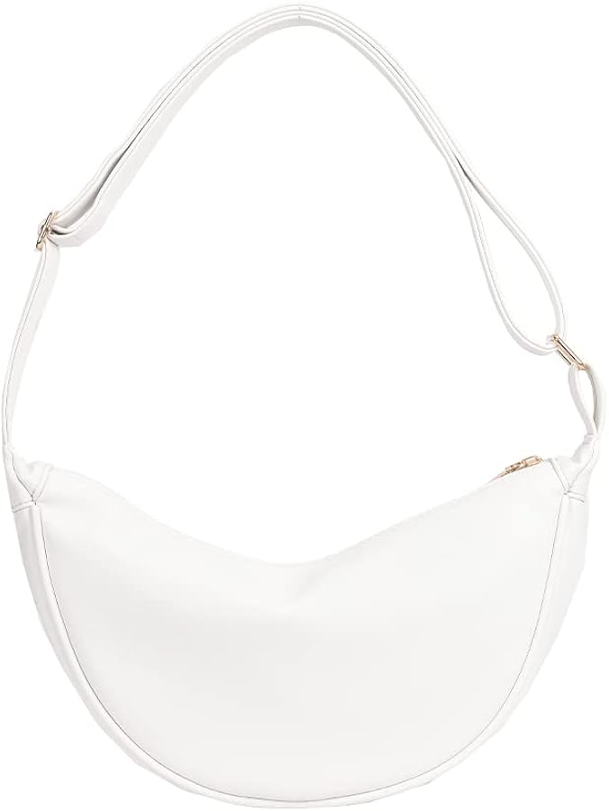 LOCCY Borsa In Pelle PU Half Moon, Borsa A Tracolla Half Moon Tracolla Larga Staccabile E Regolabile Per Tutte Le Occasioni (Bianco
