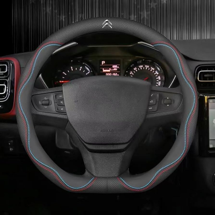 LOPAMCGH Coprivolante Auto Per Citroen DS4 DS5 2011-2015, Copertura Volante Auto Microfibra, Copri Volante Antiscivolo Traspirante, Confortevoli Durevole Auto Coprivolanti,D Shape