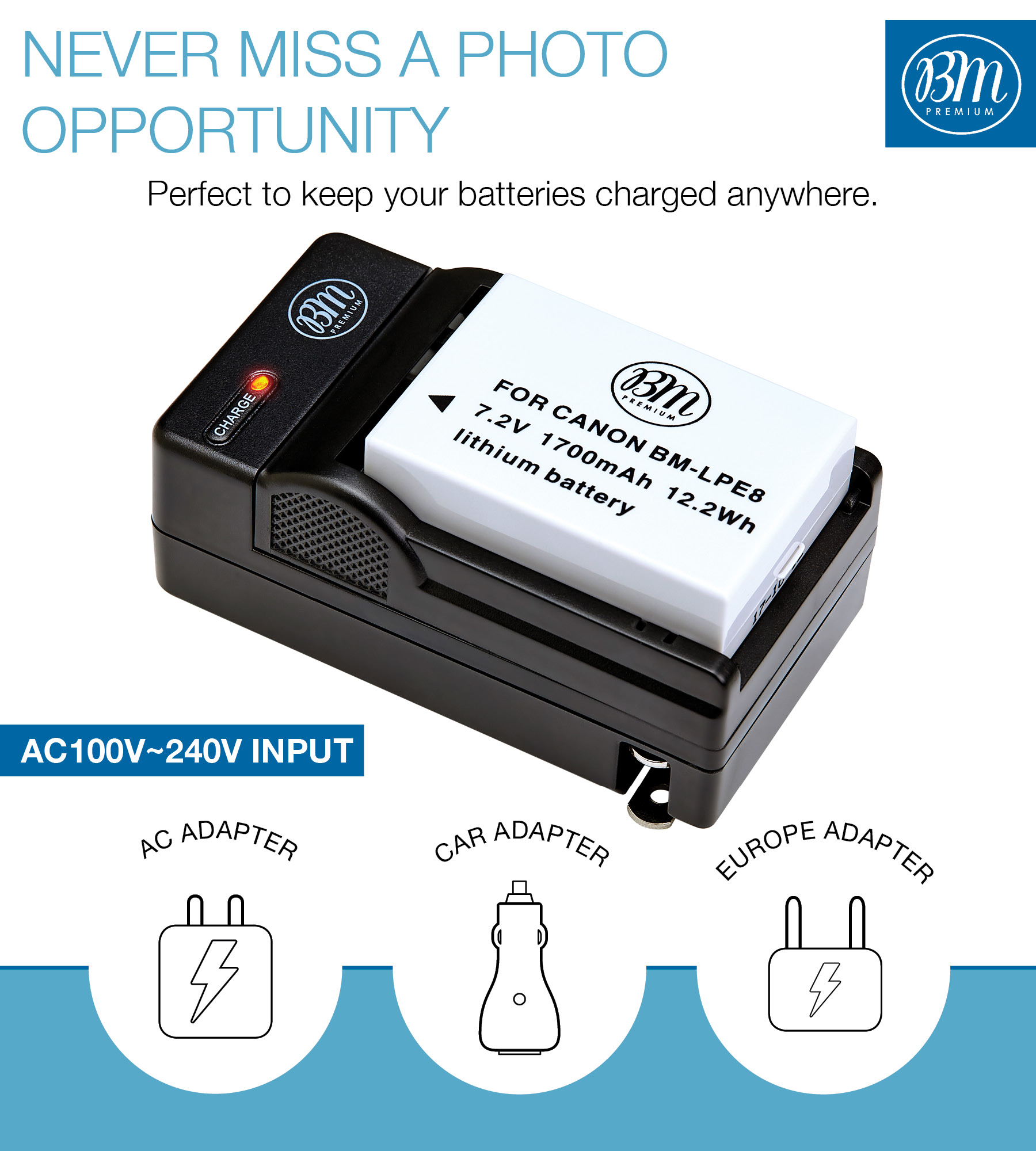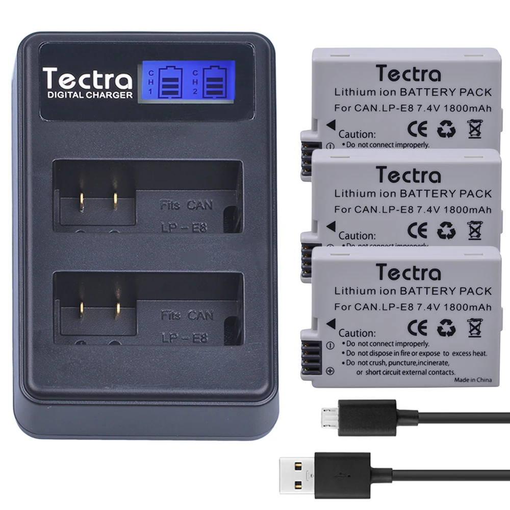 PowerTrust 1Pcs 1800mAh LP E8 LPE8 LP E8 Battery + Dual USB Charger For