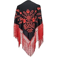 La Señorita Foulard Cintura Chale Manton De Manila Flamenco Di Danza Nero Con Diversi Fiori Colorati Large : Amazon.it: Moda