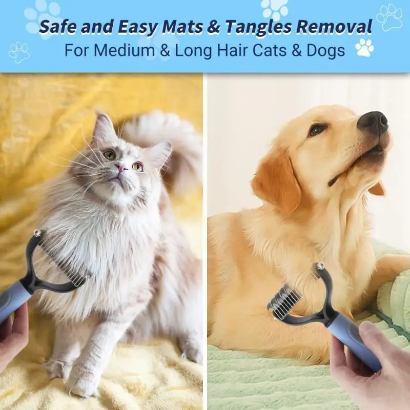 Rastrello Sottopelo Per Cani, Spazzola Per La Toelettatura Degli Animali Domestici, Chiodi In Acciaio Arrotondati A Doppia Fila, Riduce Lo Spargimento Del 90%, Facile Da Rimuovere I Grovigli
