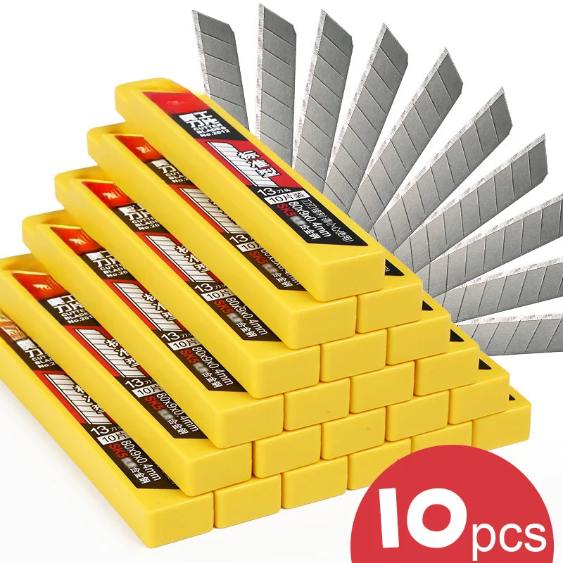 Materiale: acciaio inossidabile di alta qualità; larghezza: 9 mm 60 gradi 9 mm lama di ricambio / 30 gradi 9 mm lama di ricambio Applicazione: Adatto per la maggior parte dei coltelli artigianali da 9 mm, taglierini, coltelli multiuso e così via. Lame a scatto standard, 9 mm L x 72 mm L x 0,38 mm T, 30 gradi; Adatto a tutte le maniglie standard e realizzato in acciaio al carbonio di alta qualità Lame Taglierino Lame Temprate Per Coltelli. Lame Grezze Per Coltelli. Lame Coltelli Per Lame Ricambio Cutter 9 Mm Facile da trasportare: le lame sono confezionate in una custodia di plastica rigida. Ma le lame a scatto consentono di rompere una lama smussata e di sostituirla con una nuova punta affilata, in modo che la lama rimanga sempre affilata. 100PCS lame di ricambio in acciaio inox 9 MM: il Value Pack contiene 10 scatole (10 PCS / scatola) di lame. Lame a scatto: tutte le lame hanno sezioni che si rompono facilmente. Caratteristiche del prodotto - Lame a scatto larghe 9 mm 100PCS Lame di ricambio da 9 mm - Le lame sono compatibili con la maggior parte dei coltelli multiuso Materiale delle lame: acciaio inossidabile Contenuto della fornitura: 100 pezzi di lame a scatto, facili da trasportare.